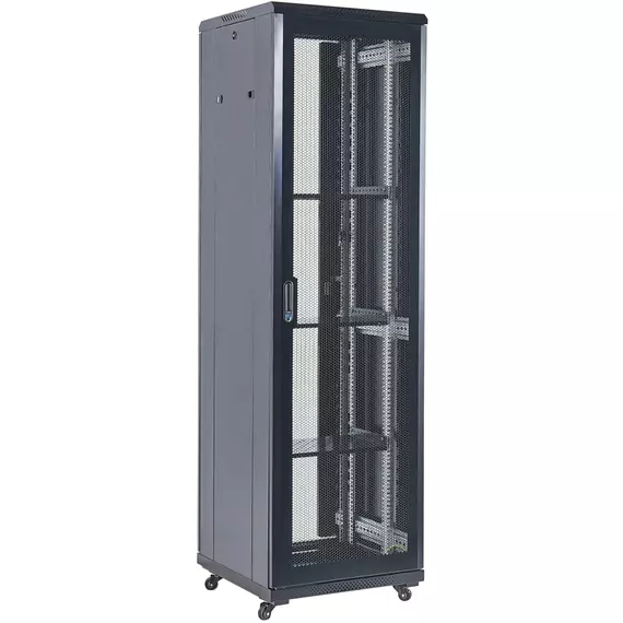 Шкаф серверный напольный Rexant 04-4266-232 42U 600x800мм пер.дв.перфор. металл 2 бок.пан. направл.под винты 800кг черный 92кг 230град. 2054мм IP20 сталь