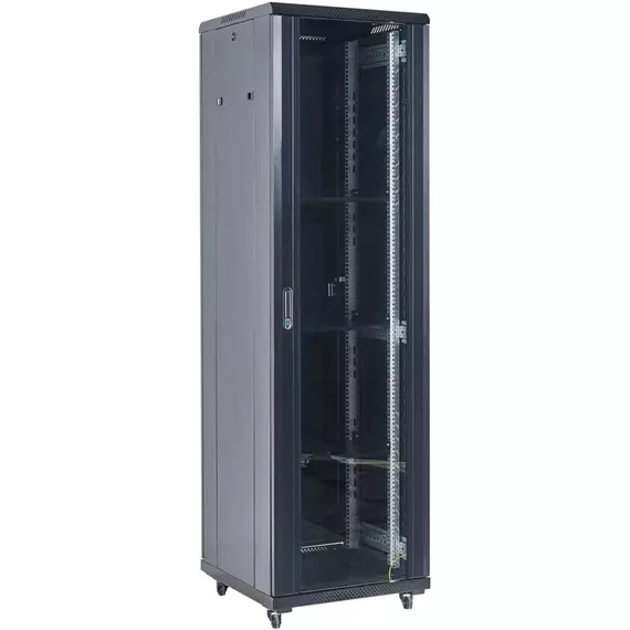 Шкаф серверный напольный Rexant 04-4268-212 42U 600x800мм пер.дв.стекл металл 2 бок.пан. направл.под винты 800кг черный 92кг 230град. 2054мм IP20 сталь