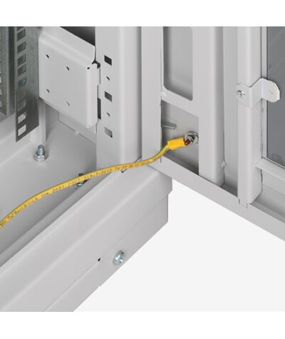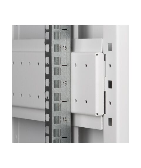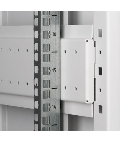Для установки телекоммуникационного оборудования, внутри шкафа располагаются две пары монтажных направляющих 19" регулируемые по глубине. Юнитовая (U) разметка монтажных направляющих 19", создает дополнительное удобство для установки оборудования.