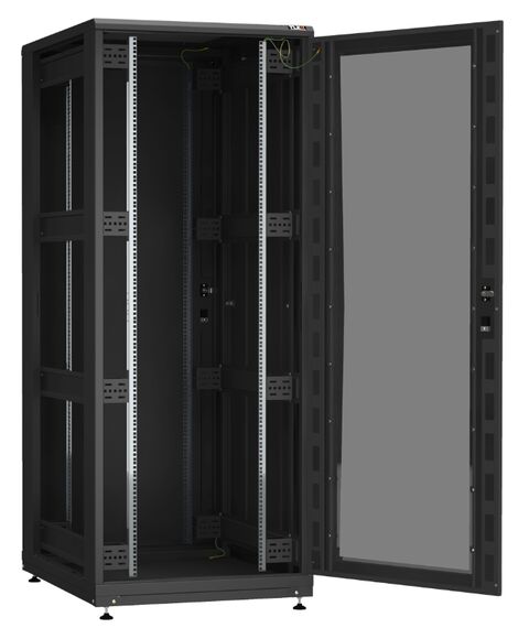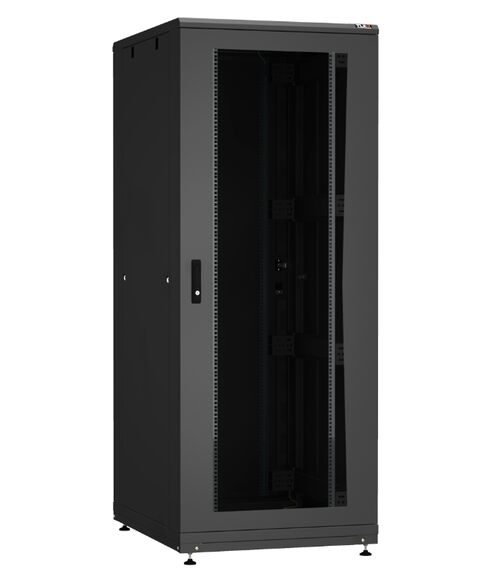 Напольный шкаф TLK TFR-428010-GMMM-R-BK 19", 42U, стеклянная дверь, Ш800хВ2010хГ1000мм, в разобранном виде, черный