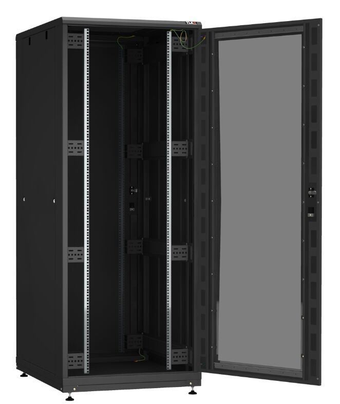 Наличие у шкафа двух дверей с углом открытия более 180 градусов и съемных боковых панелей, предоставляет доступ для установки и обслуживания оборудования с четырех сторон. Наличие у дверей подпружиненных петель позволяет оперативно сменить открытие с левого на правое, а также быстро их установить, либо же демонтировать.