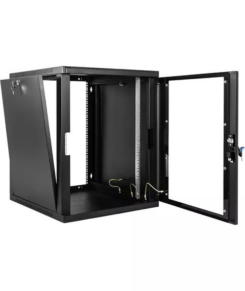 Шкаф коммутационный ЦМО ШРН-12.500-9005 настенный 12U 600x529мм пер.дв.стекл 200кг черный 470мм 180град.