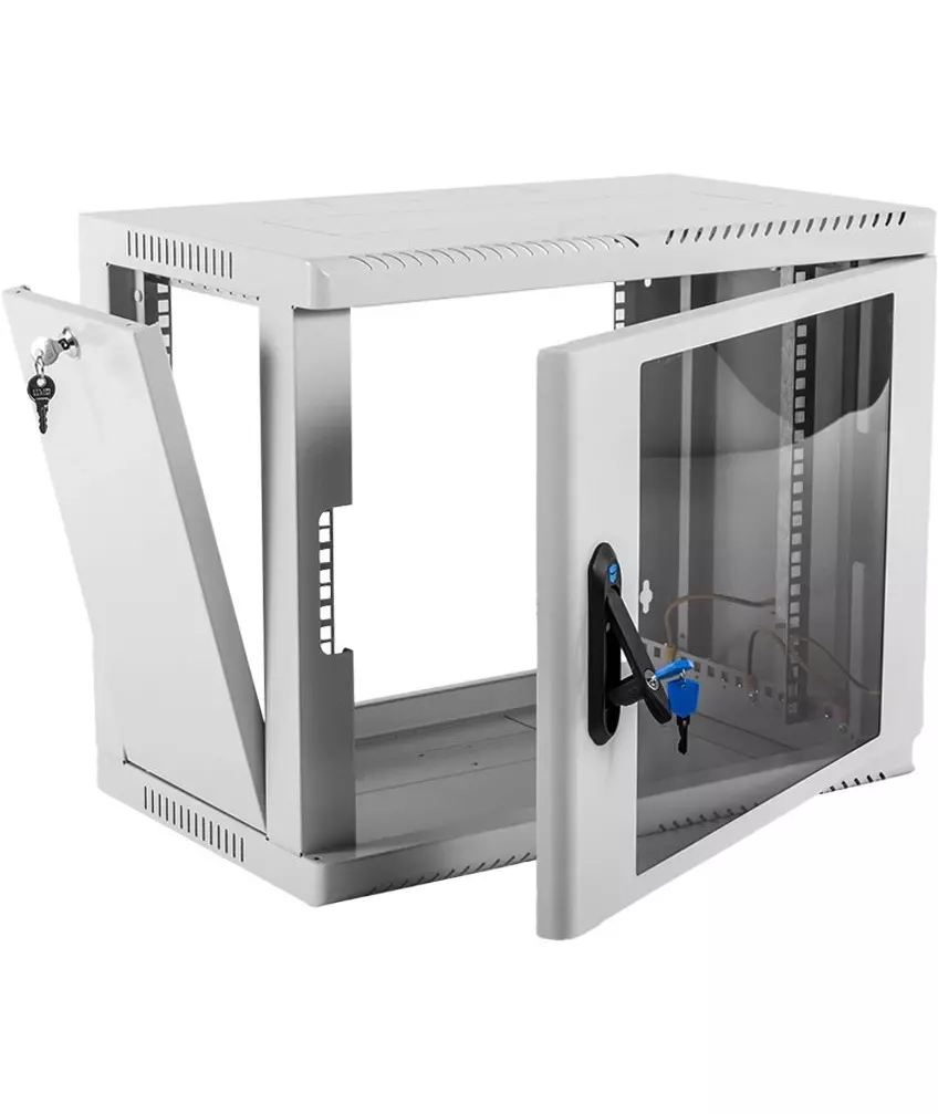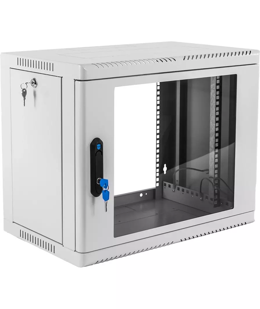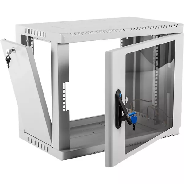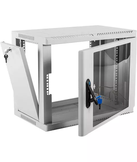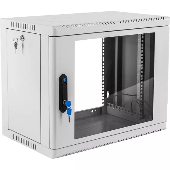 Шкаф коммутационный ЦМО ШРН-9.500 настенный 9U 600x529мм пер.дв.стекл 200кг серый 470мм 180град.