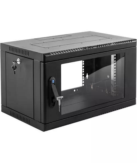 Шкаф коммутационный ЦМО ШРН-9.500-9005 настенный 9U 600x529мм пер.дв.стекл 200кг черный 470мм 180град.