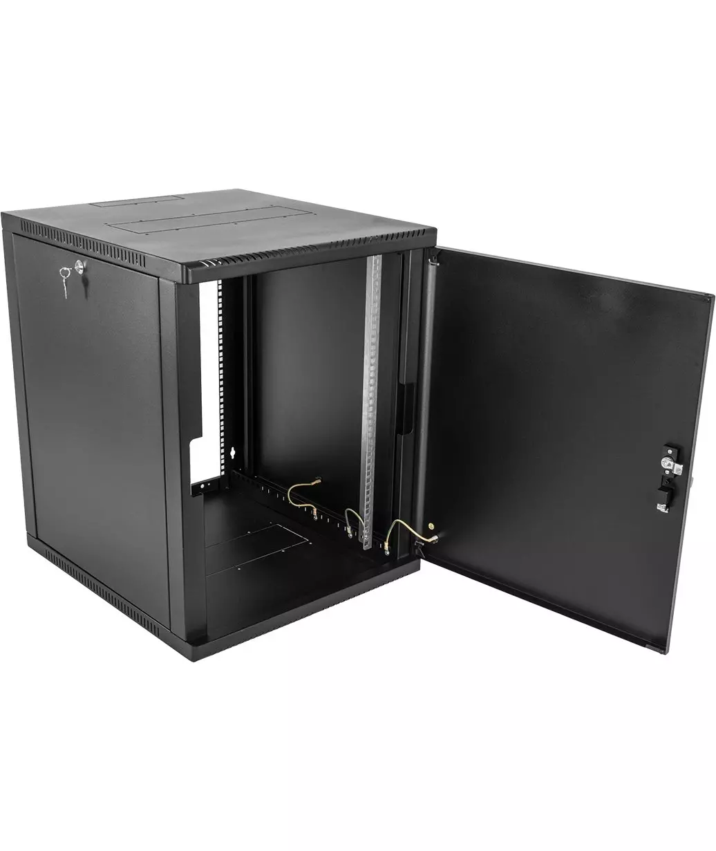 Шкаф коммутационный ЦМО ШРН-9.650.1-9005 настенный 9U 600x658мм пер.дв.металл 200кг черный 600мм 180град.
