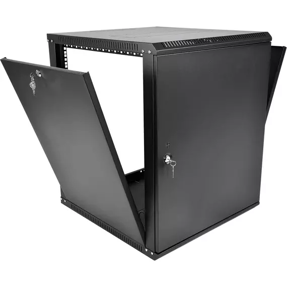Шкаф коммутационный настенный ЦМО ШРН-Э-18.500.1-9005 ШРН-Эконом 18U 600x520мм пер.дв.металл направл.под закл.гайки 75кг черный 470мм 26.82кг 180град. 878мм IP20 сталь