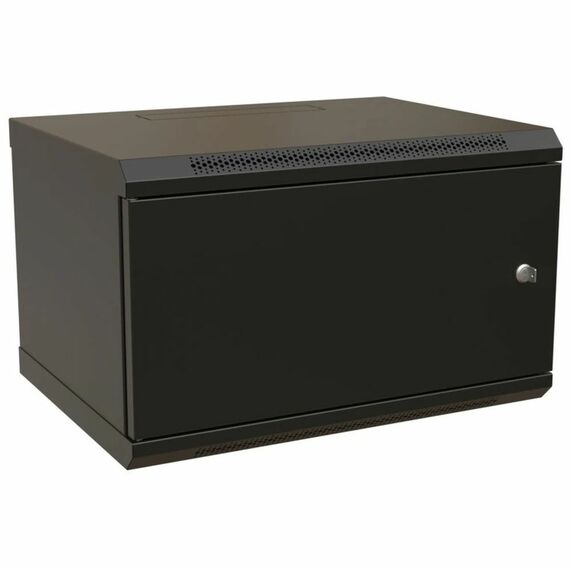 Шкаф настенный Hyperline WR-TW-0666-SR-RAL9004 19", 6U, 367x600x600 мм, цельнометаллическая дверь с замком, цвет черный (RAL9004) (разобранный)