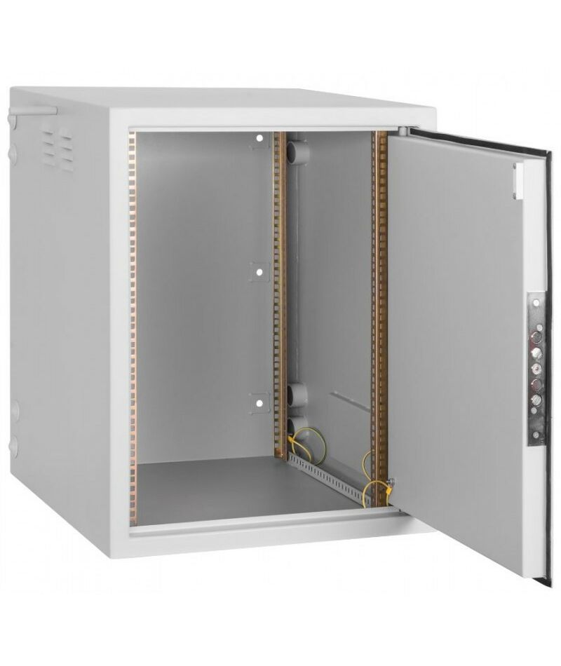 - Настенные антивандальные шкафы серии Secure (TWS) — предназначен для защиты от несанкционированного доступа и кражи, установленного в них телекоммуникационного оборудования. Типичное использование шкафа - на чердаках, в подвалах и коммунальных зонах зданий. Особенностью настенных шкафов серии TWS является антивандальная конструкция, изготовленные из листовой стали 2 мм корпус и дверь, а так же замок повышенной надежности и секретности. Конструкция корпуса и двери — цельносварная, усиленная. Крепление шкафа к стене осуществляется через усиленные монтажные отверстия. Мощная, двухслойная дверь утоплена внутрь, что исключает возможность силового открытия при помощи фомки. Дверь снабжена 5-ригельным замком повышенной секретности. (В комплект входят 4 ключа). Шкаф снабжен 4-мя оцинкованными монтажными направляющими, регулируемыми по глубине, что позволяет устанавливать достаточно тяжелое и габаритное оборудование. На боковых стенках имеются по 4-е защищенных кабельных ввода диаметром 36 мм, закрытые резиновыми заглушкам. Жалюзийные вентиляционные отверстия, расположены на разных уровнях боковых стенок, обеспечивают хорошую вентиляцию устанавливаемого оборудования. С внутренней стороны шкафа вентиляционные отверстия имеют дополнительную защиту в виде стальных кожухов. На одной из боковых стенок внутри шкафа предусмотрено посадочное место под установку вентилятора размером 120х120х38 мм. Все токопроводящие части шкафа заземлены между собой. Для удобства переноски и монтажа предусмотрены легкосъемные ручки. При необходимости размещения шкафа на пол, в основании шкафа имеются отверстия для установки регулируемых по высоте опор. (В комплект поставки не входят). Антикоррозионное покрытие выполнено ударопрочной порошковой краской. Шкаф выполнен в системе несущих конструкций серии 482,6 мм ГОСТ 28601-90 (19-дюймовому стандарту IEC 297). Максимальная допустимая распределенная нагрузка на шкаф серии TWP составляет 150 кг. Степень защиты шкафа составляет IP 31. Шкаф поставляется в собранном виде.
