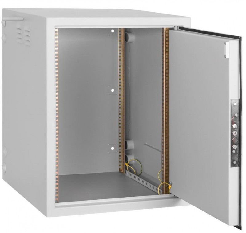 - Настенные антивандальные шкафы серии Secure (TWS) — предназначен для защиты от несанкционированного доступа и кражи, установленного в них телекоммуникационного оборудования. Типичное использование шкафа - на чердаках, в подвалах и коммунальных зонах зданий. Особенностью настенных шкафов серии TWS является антивандальная конструкция, изготовленные из листовой стали 2 мм корпус и дверь, а так же замок повышенной надежности и секретности. Конструкция корпуса и двери — цельносварная, усиленная. Крепление шкафа к стене осуществляется через усиленные монтажные отверстия. Мощная, двухслойная дверь утоплена внутрь, что исключает возможность силового открытия при помощи фомки. Дверь снабжена 5-ригельным замком повышенной секретности. (В комплект входят 4 ключа). Шкаф снабжен 4-мя оцинкованными монтажными направляющими, регулируемыми по глубине, что позволяет устанавливать достаточно тяжелое и габаритное оборудование. На боковых стенках имеются по 4-е защищенных кабельных ввода диаметром 36 мм, закрытые резиновыми заглушкам. Жалюзийные вентиляционные отверстия, расположены на разных уровнях боковых стенок, обеспечивают хорошую вентиляцию устанавливаемого оборудования. С внутренней стороны шкафа вентиляционные отверстия имеют дополнительную защиту в виде стальных кожухов. На одной из боковых стенок внутри шкафа предусмотрено посадочное место под установку вентилятора размером 120х120х38 мм. Все токопроводящие части шкафа заземлены между собой. Для удобства переноски и монтажа предусмотрены легкосъемные ручки. При необходимости размещения шкафа на пол, в основании шкафа имеются отверстия для установки регулируемых по высоте опор. (В комплект поставки не входят). Антикоррозионное покрытие выполнено ударопрочной порошковой краской. Шкаф выполнен в системе несущих конструкций серии 482,6 мм ГОСТ 28601-90 (19-дюймовому стандарту IEC 297). Максимальная допустимая распределенная нагрузка на шкаф серии TWP составляет 150 кг. Степень защиты шкафа составляет IP 31. Шкаф поставляется в собранном виде.