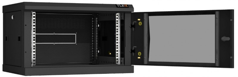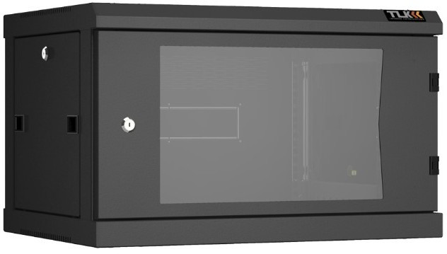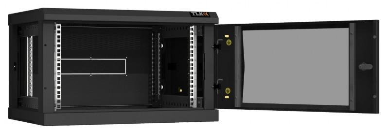 Настенный разборный шкаф TLK TWC-066045-R-G-BK 19", 6U, стеклянная дверь, Ш600хВ370хГ450мм, 2 пары монтажных направляющих, черный