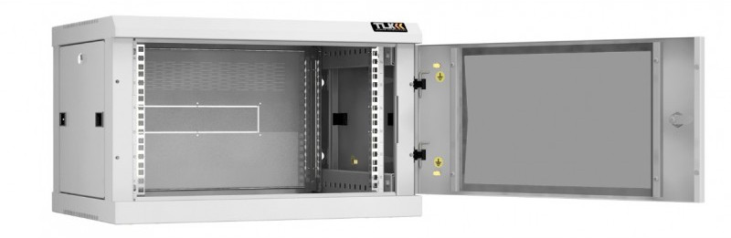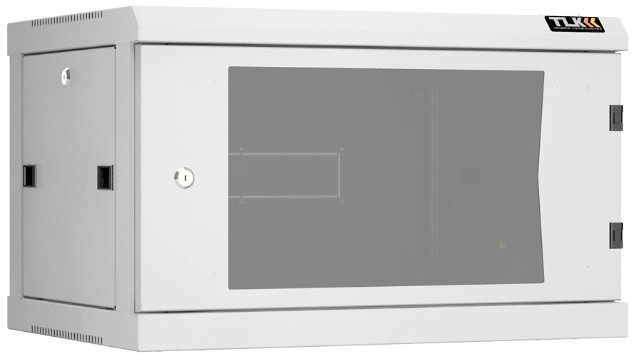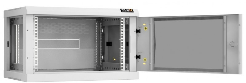 Настенный разборный шкаф TLK TWC-066045-R-G-GY 19", 6U, стеклянная дверь, Ш600хВ370хГ450мм, 2 пары монтажных направляющих, серый