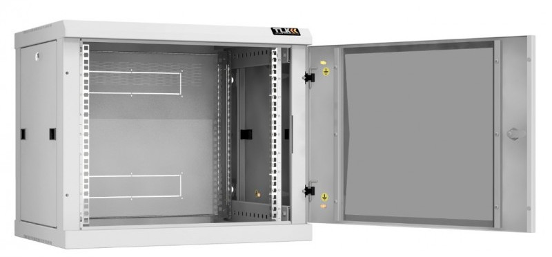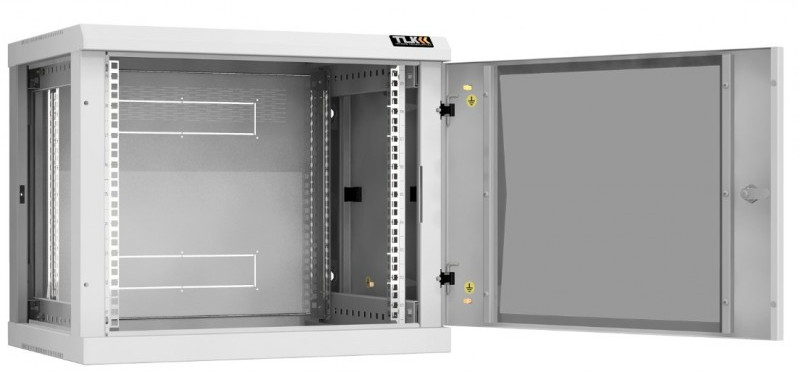 Настенный разборный шкаф TLK TWC-096045-R-G-GY 19", 9U, стеклянная дверь, Ш600хВ503хГ450мм, 2 пары монтажных направляющих, серый