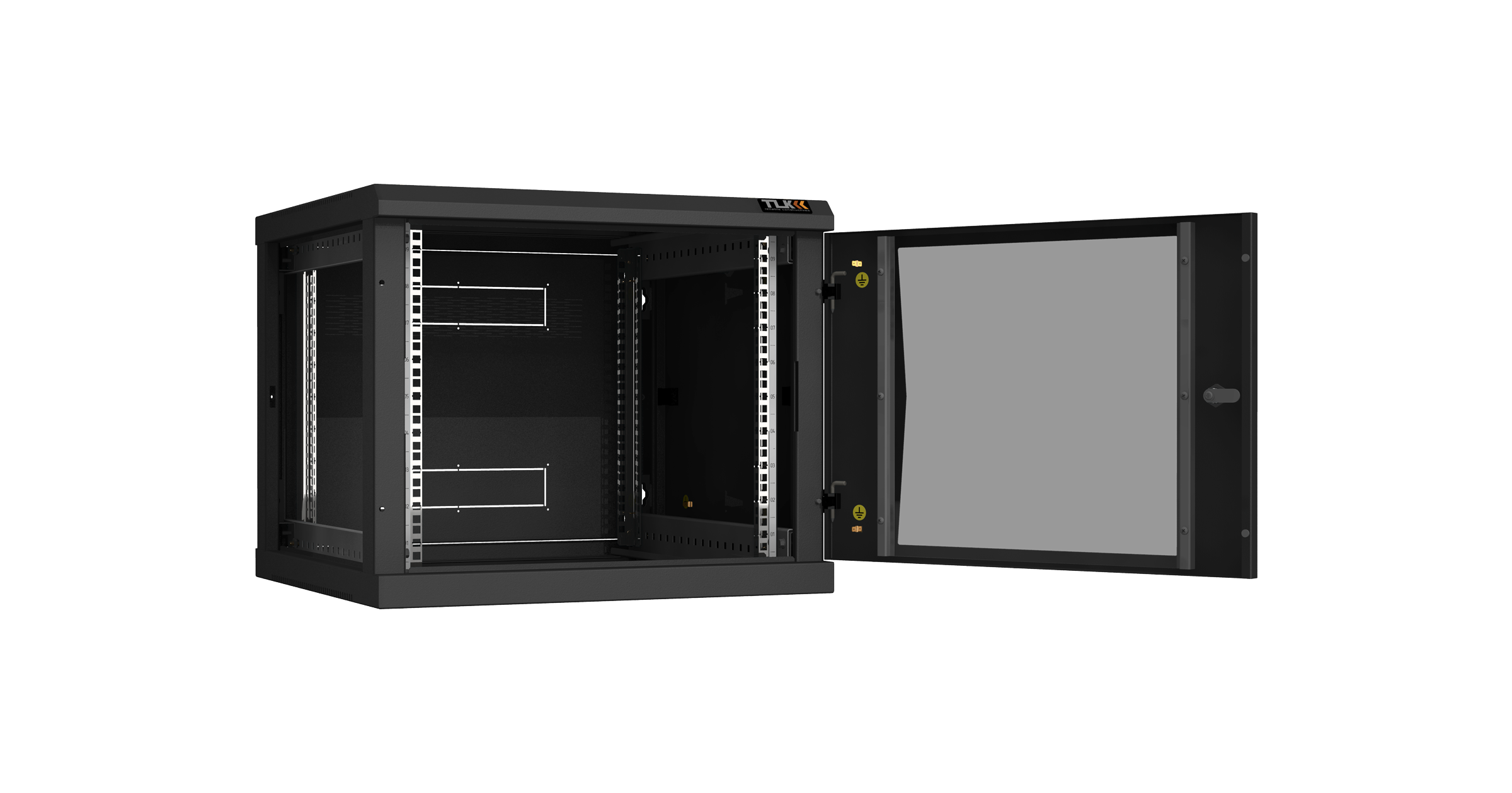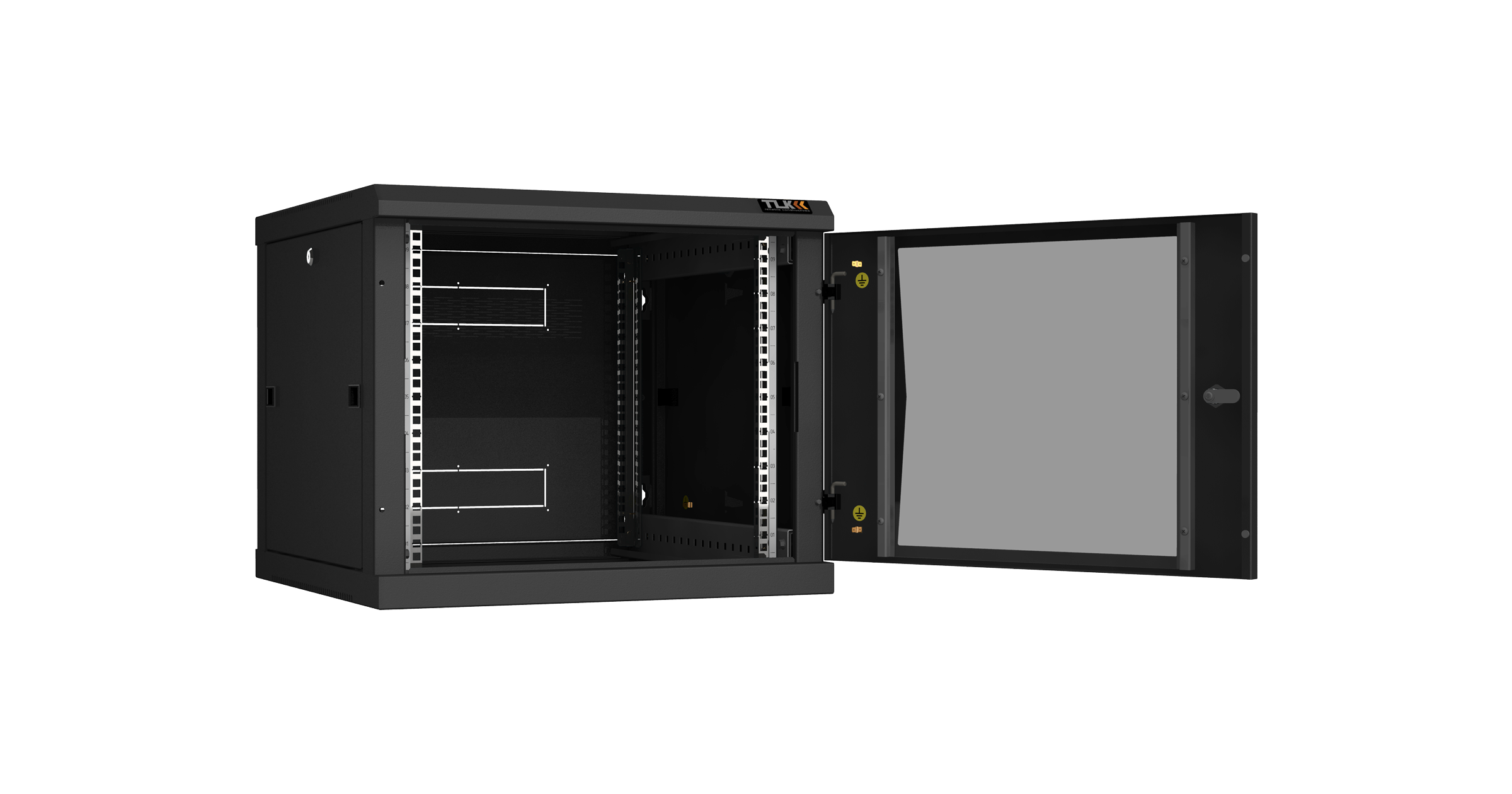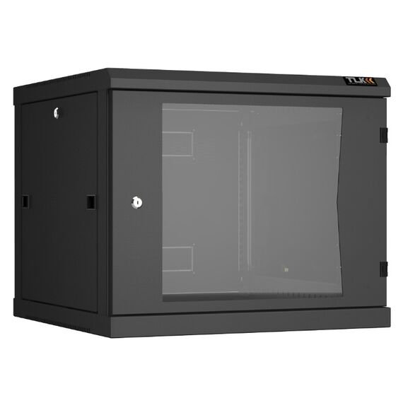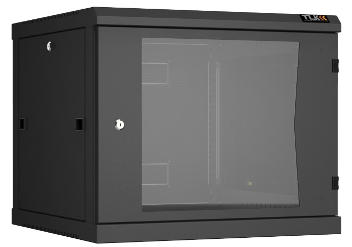 Настенный разборный шкаф TLK TWC-096060-R-G-BK 19", 9U, стеклянная дверь, Ш600хВ503хГ600мм, 2 пары монтажных направляющих, черный