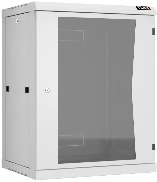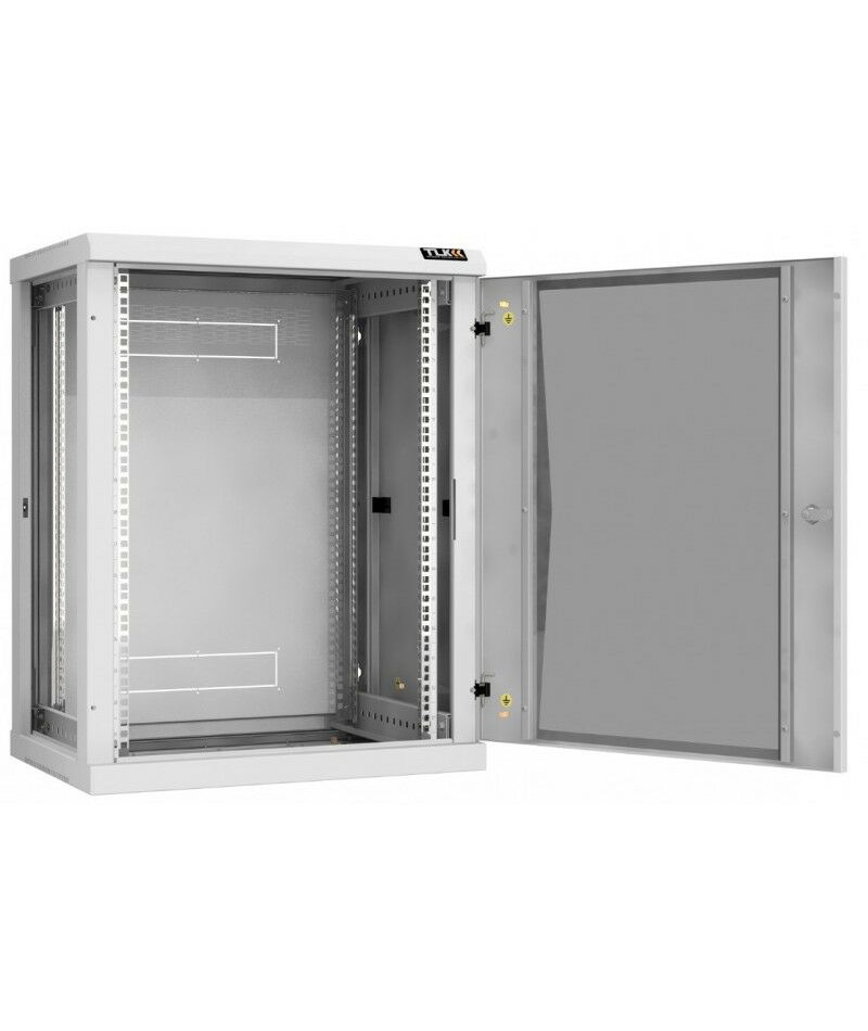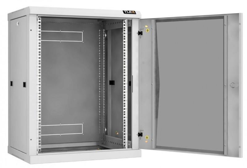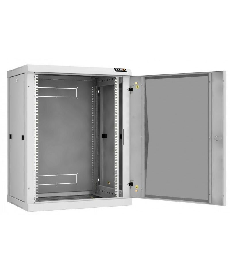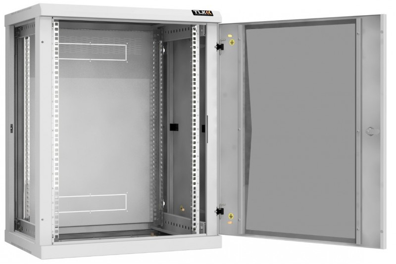 Настенный разборный шкаф TLK TWC-156045-R-G-GY 19", 15U, стеклянная дверь, Ш600хВ770хГ450мм, 2 пары монтажных направляющих, серый