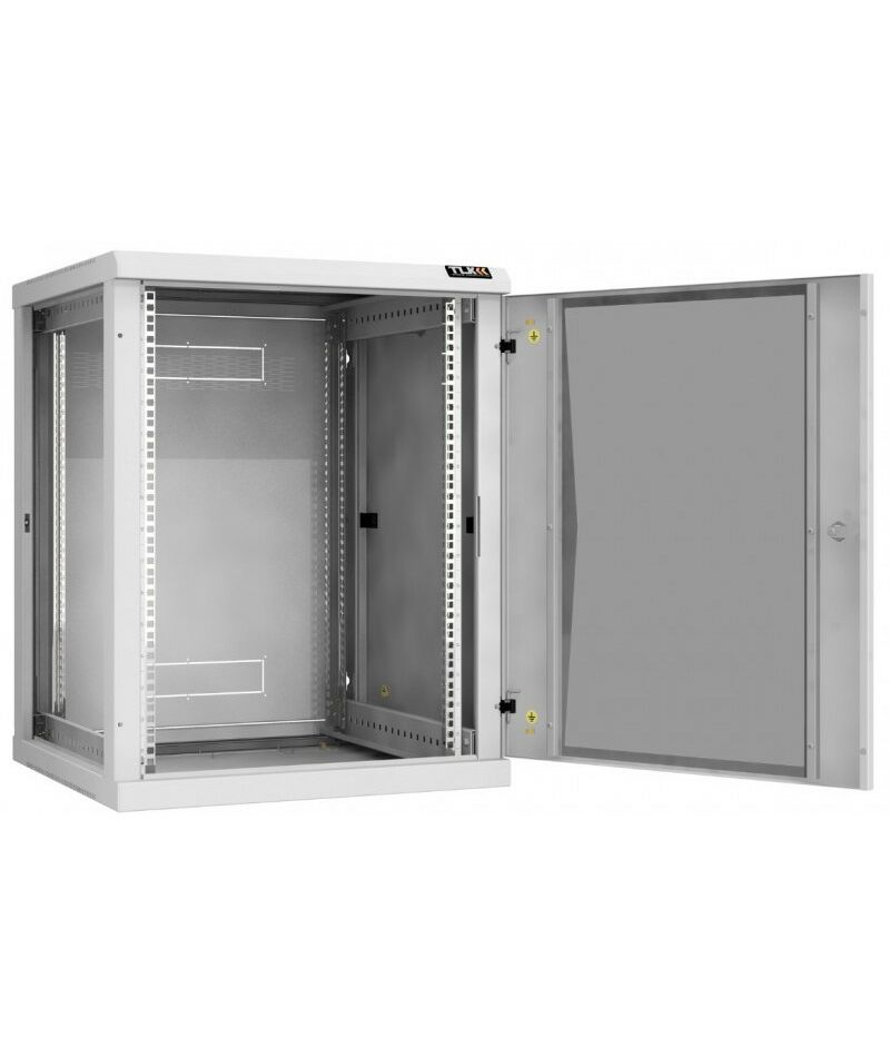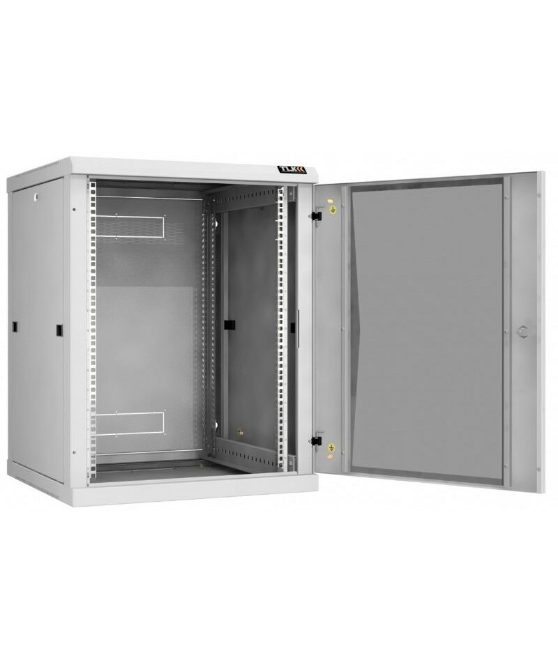 Настенный разборный шкаф TLK TWC-156060-R-G-GY 19", 15U, стеклянная дверь, Ш600хВ770хГ600мм, 2 пары монтажных направляющих, серый
