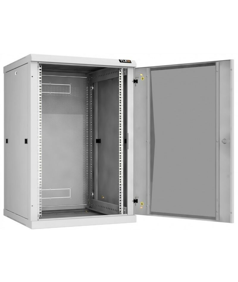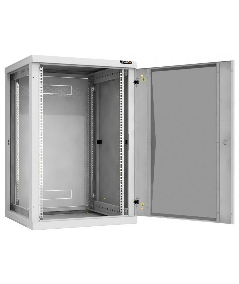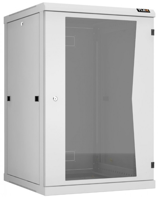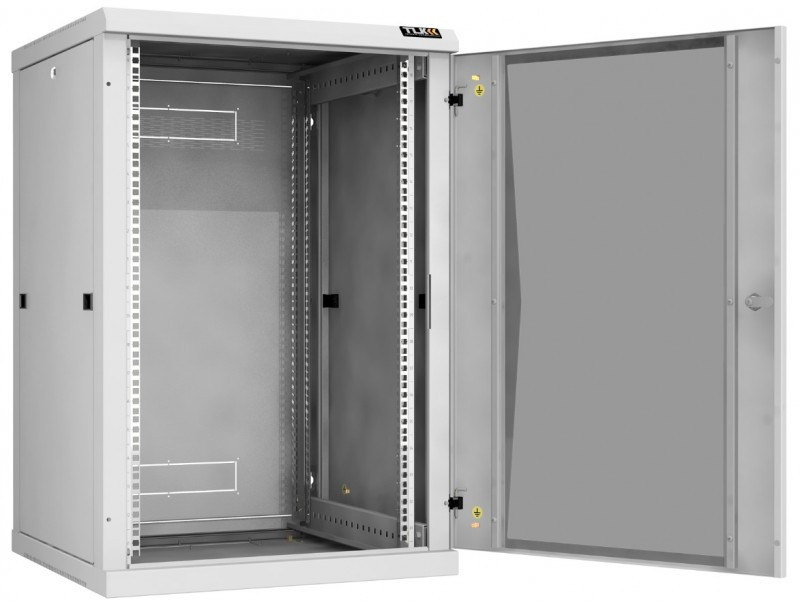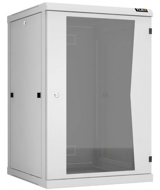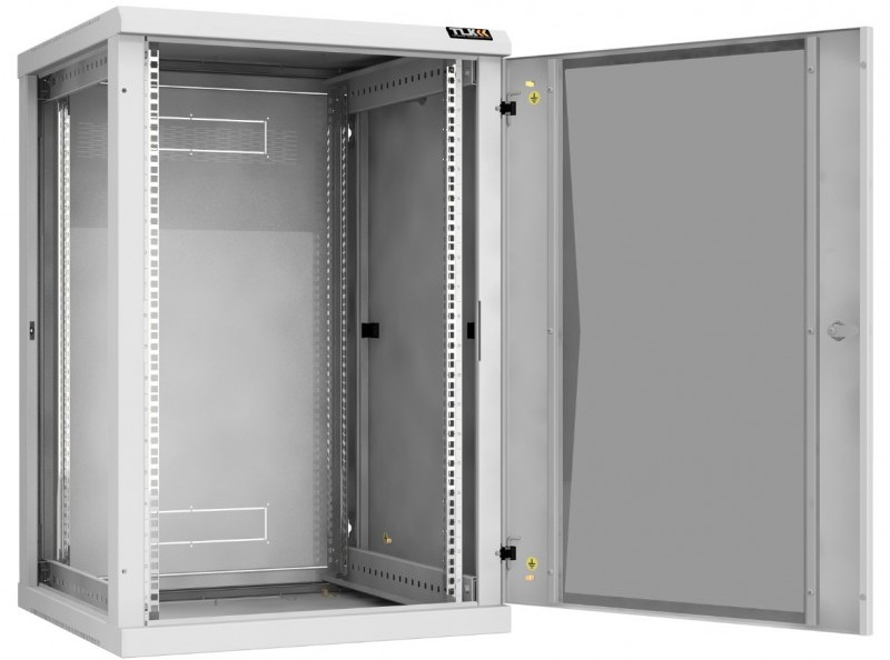 Настенный разборный шкаф TLK TWC-186060-R-G-GY 19", 18U, стеклянная дверь, Ш600хВ904хГ600мм, 2 пары монтажных направляющих, серый