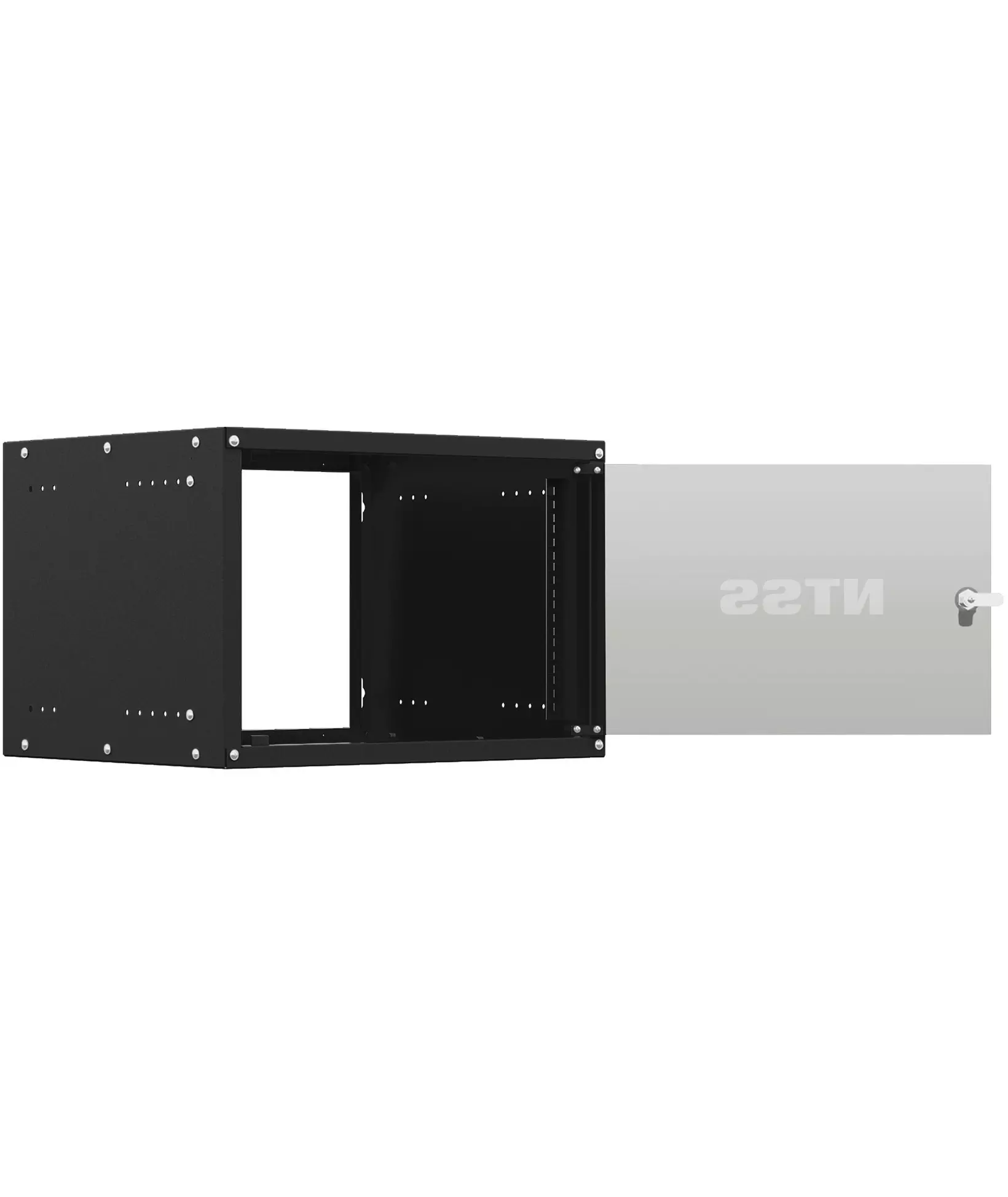 Шкаф коммутационный NTSS NTSS-WL6U5545GS-BL Lime настенный 6U 550x450мм пер.дв.стекл несъемн.бок.пан. 30кг черный 370мм 9.6кг 110град. 370мм IP20 сталь