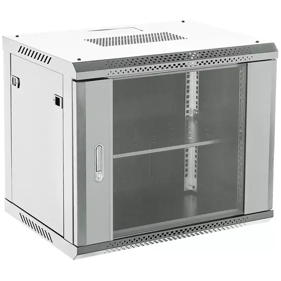 Шкаф коммутационный настенный Rexant 04-0664-111 6U 600x450мм пер.дв.стекл металл 2 бок.пан. направл.под винты 60кг серый 11.55кг 230град. 368мм IP20 сталь