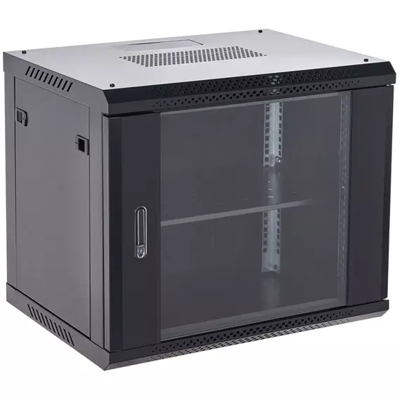 Шкаф коммутационный настенный Rexant 04-1266-112 12U 600x600мм пер.дв.стекл металл 2 бок.пан. направл.под винты 60кг черный 19кг 230град. 635мм IP20 сталь