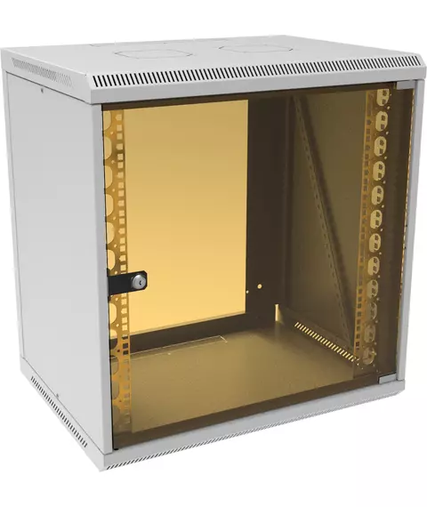 Шкаф коммутационный Suprlan 05-1203 настенный 12U 600x450мм пер.дв.стекл направл.под закл.гайки 70кг светло-серый 385мм 21.94кг 620мм металл