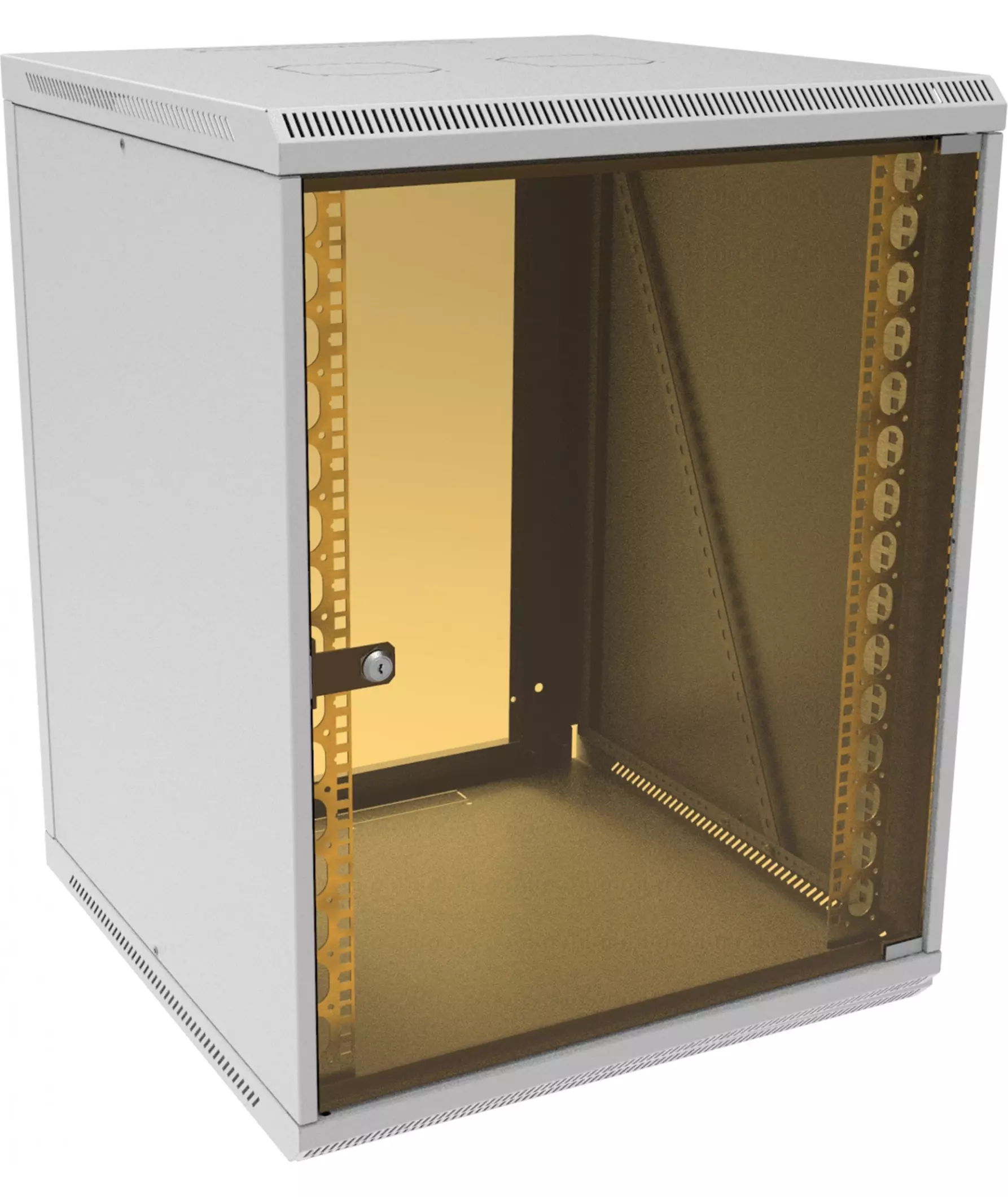 Шкаф коммутационный Suprlan 05-1503 настенный 15U 600x450мм пер.дв.стекл направл.под закл.гайки 70кг светло-серый 25.1кг 750мм металл