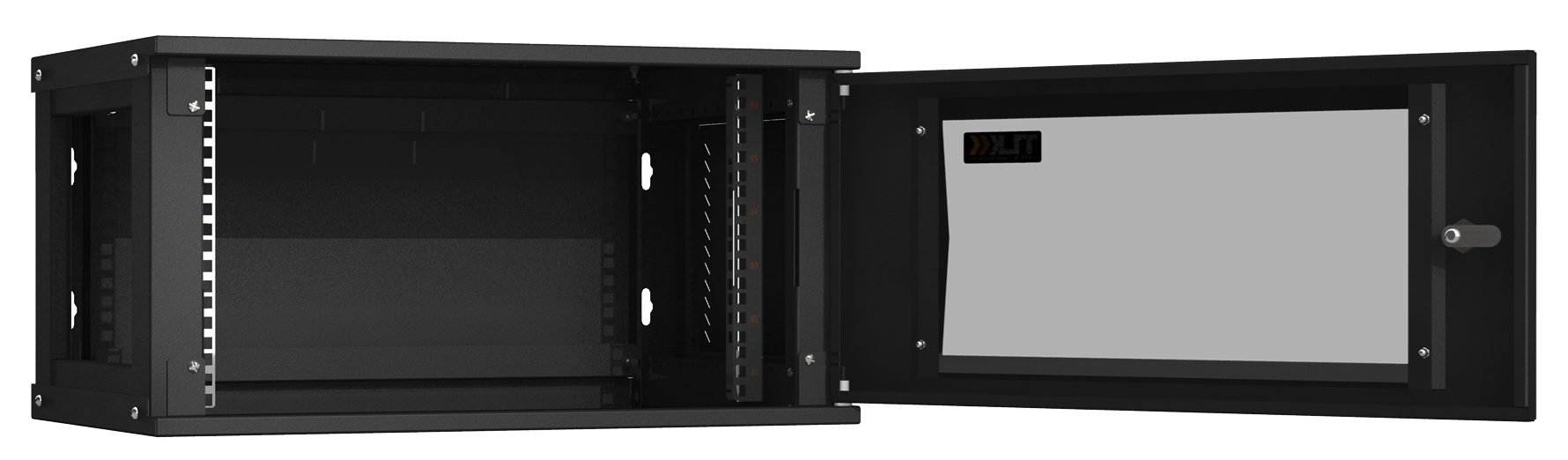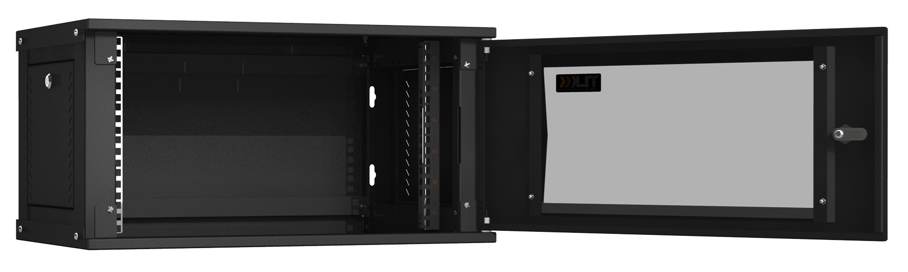 Настенный разборный шкаф TLK TWI-066035-R-G-BK 19", 6U, стеклянная дверь, Ш600хВ303хГ350мм, 1 пара монтажных направляющих, черный