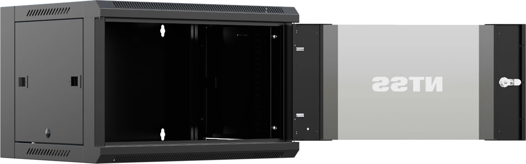 Шкаф коммутационный настенный NTSS NTSS-W12U6060GS-BL 12U 570x600мм пер.дв.стекл 60кг черный 500мм 27кг 220град. 635мм IP20 сталь