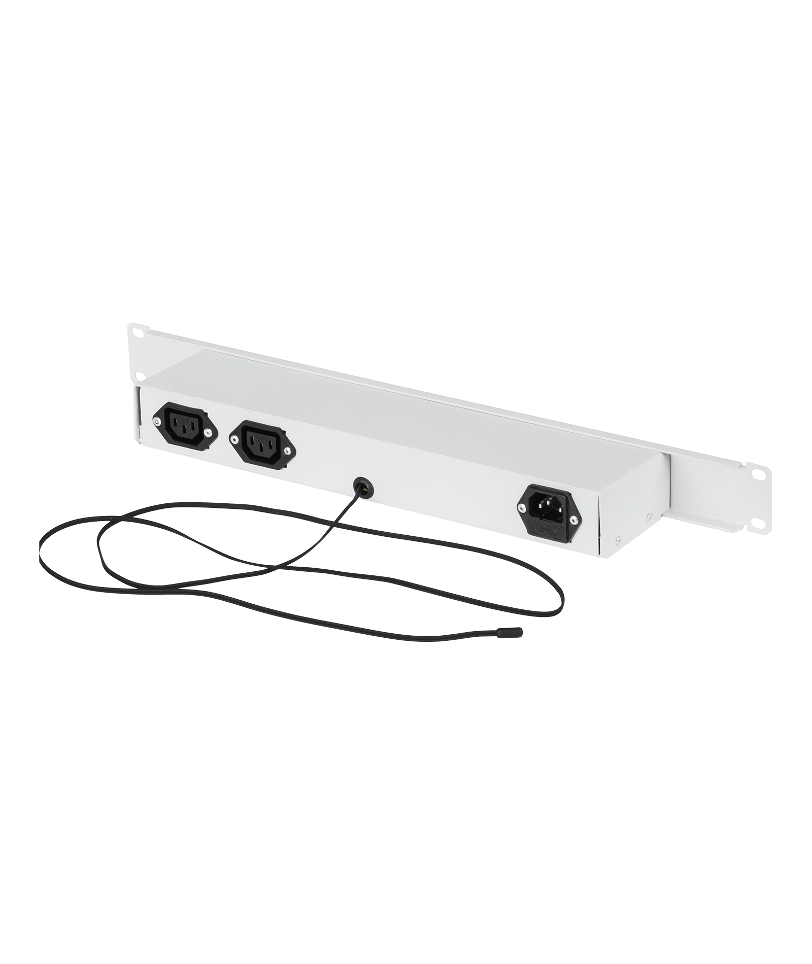 - На задней стороне панели расположено два разъема IEC C13 для подключения вентиляторных устройств и разъем IEC C14 для входящего питания (шнуры поставляется отдельно)