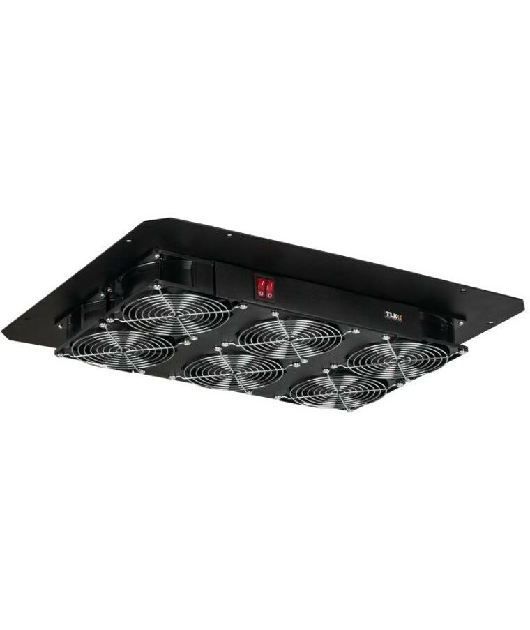 Вентиляторный блок предназначен для принудительного охлаждения активного оборудования, установленного в телекоммуникационном шкафу, путем отвода теплых воздушных масс из внутреннего объем шкафа. Блок устанавливается в специальные ниши на крыше или в основании напольных шкафов TLK и совместимы с сериями TFE, TFL, TFR, TFA. При этом шкафы глубиной (600 мм) предусматривают только верхнее размещение вентиляторного блока. Для более подробной информации сверьтесь с таблицей в разделе "Описание" к шкафу. Питание вентиляторного блока на 6 вентиляторов осуществляется с помощью подключения шнура питания к сети с напряжением 220 В, 50 Гц. Разъем питания на вентиляторном блоке типа IEC-60320 C14. Вентиляторы закрыты решетками с обеих сторон. Вентиляторный блок конструктивно выполнен с монтажным фланцем для удобства установки. Несущая конструкция вентиляторного блока выполнена из 2 мм стали. Антикоррозионное и декоративное покрытие выполнено ударопрочной порошковой краской черного цвета.