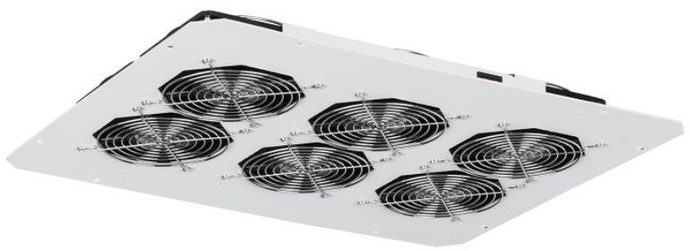 Вентиляторный блок предназначен для принудительного охлаждения активного оборудования, установленного в телекоммуникационном шкафу, путем отвода теплых воздушных масс из внутреннего объем шкафа. Блок устанавливается в специальные ниши на крыше или в основании напольных шкафов TLK и совместимы с сериями TFE, TFL, TFR, TFA. При этом шкафы глубиной (600 мм) предусматривают только верхнее размещение вентиляторного блока. Для более подробной информации сверьтесь с таблицей в разделе "Описание" к шкафу. Питание вентиляторного блока на 2 вентилятора осуществляется с помощью подключения шнура питания к сети с напряжением 220 В, 50 Гц. Разъем питания на вентиляторном блоке типа IEC-60320 C14. Вентиляторы закрыты решетками с обеих сторон. Блоки с маркировкой «F» также имеют встроенные фильтры для предотвращения засасывания пыли во внутреннее пространство шкафа. Вентиляторные блоки конструктивно выполнены с монтажным фланцем для удобства установки. Несущая конструкция вентиляторных блоков выполнена из 2 мм стали и оснащена четырьмя или шестью вентиляторами. Антикоррозионное и декоративное покрытие выполнено ударопрочной порошковой краской светло-серого или черного цвета.