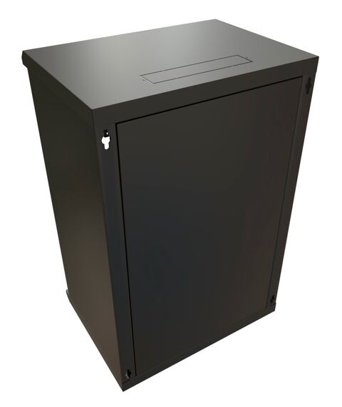 Шкаф коммутационный настенный WRLINE WR-TW-1866-SR-RAL9004 18U 600x600мм пер.дв.металл 2 бок.пан. направл.под винты 60кг черный 520мм 908мм IP20 сталь