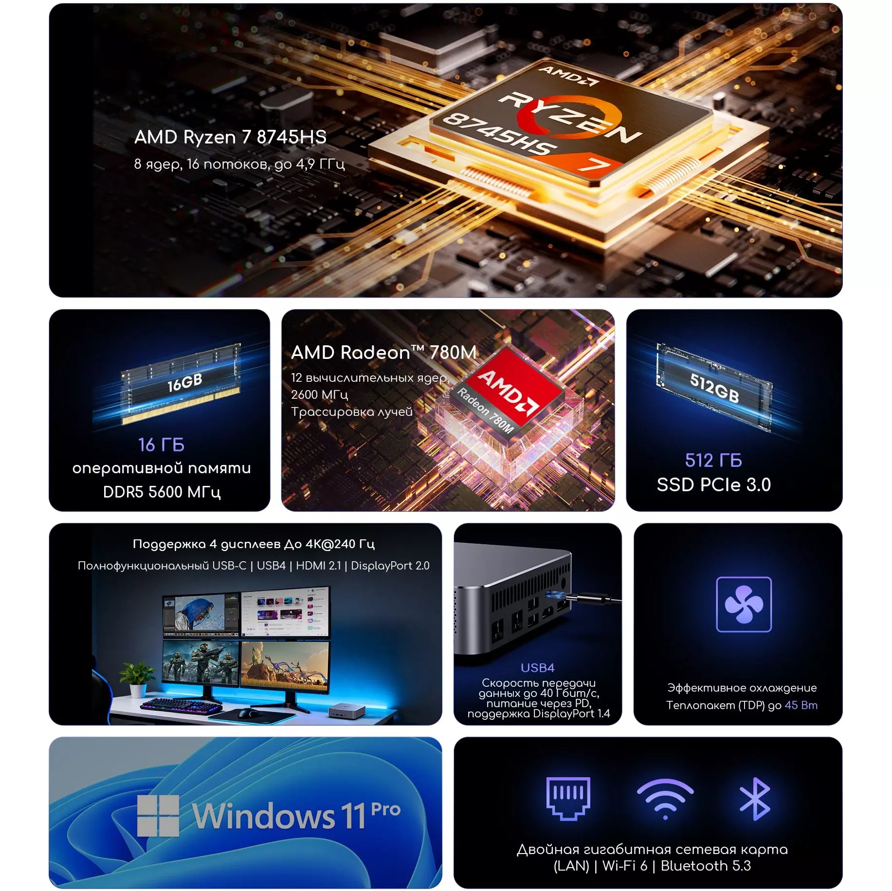 | Процессор | AMD Ryzen 7 8745HS 3.8ГГц |