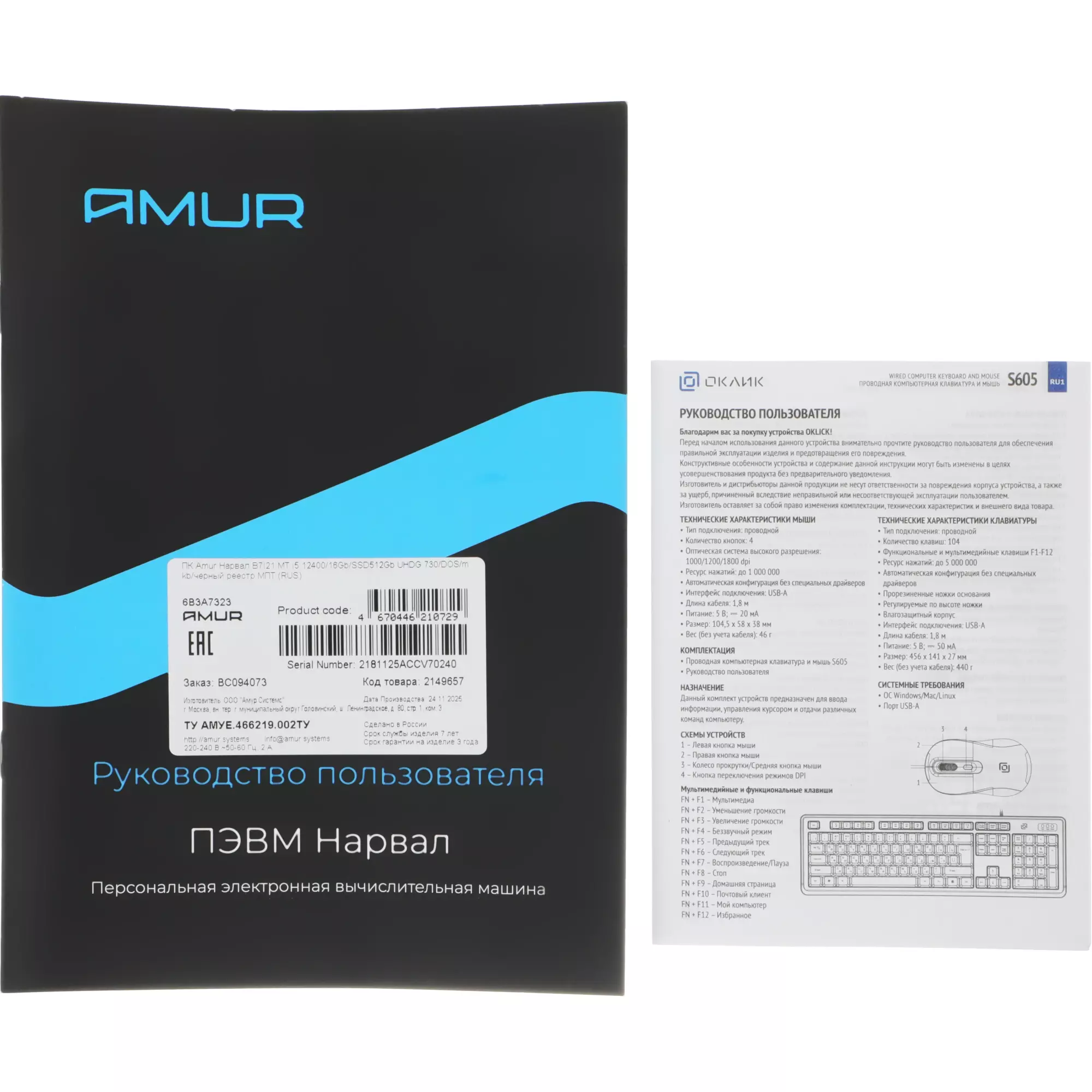 ПК Amur Нарвал B7I21 MT i5 12400 (2.5) 16Gb SSD512Gb UHDG 730 FreeDOS 2.5xGbitEth+1xGbitEth 500W мышь клавиатура черный (RUS) [2149657]