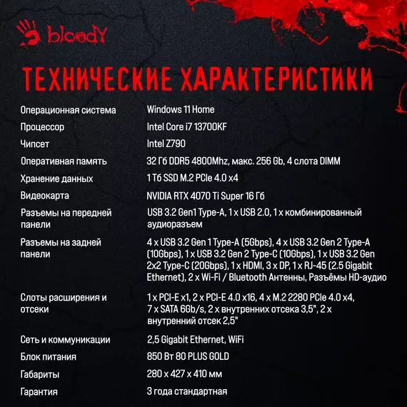 ПК Bloody BD-PC CZ79C3 MT i7 13700KF 32Gb SSD1Tb RTX4070Ti Super 16Gb Windows 11 Home 64 GbitEth 850W черный [2086022]