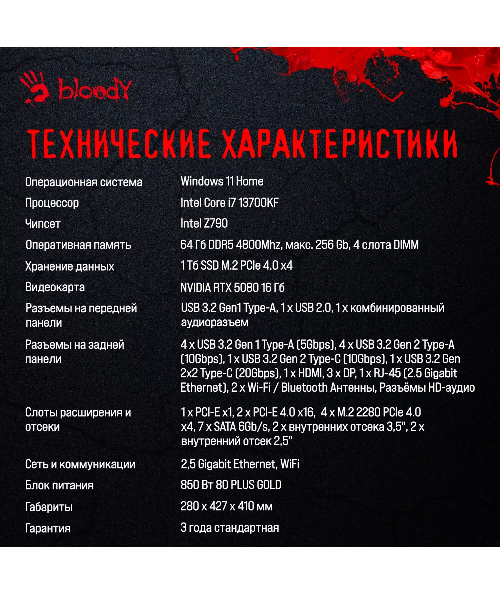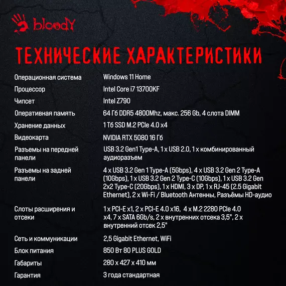 ПК Bloody BD-PC CZ79C3 i7 13700KF (3.4) 64Gb SSD1Tb RTX5080 16Gb Windows 11 Home 64 GbitEth 850W черный [2086027]