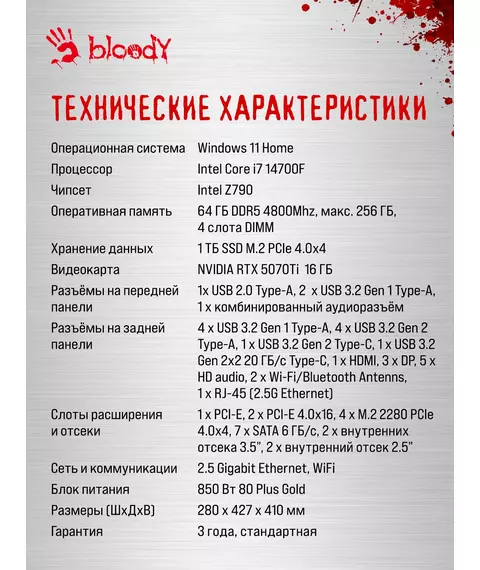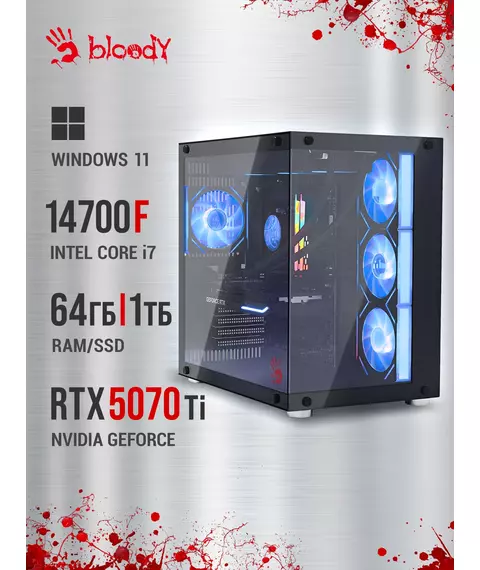 ПК Bloody BD-PC CZ79C3 MT i7 14700KF (3.4) 64Gb SSD1Tb RTX5070Ti 16Gb Windows 11 Home 64 2.5xGbitEth 850W черный RUS [2129080]