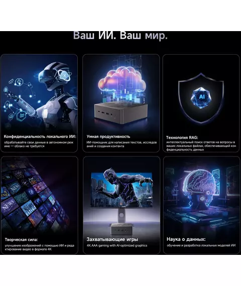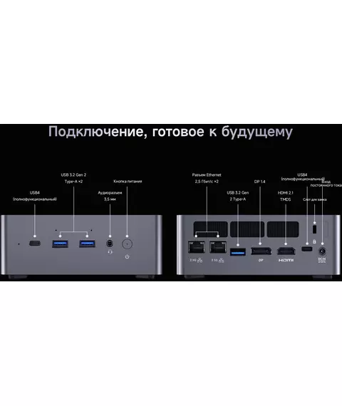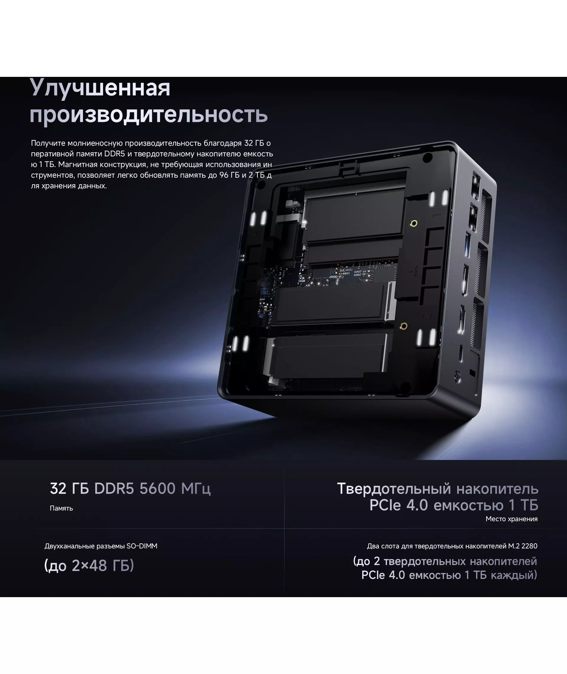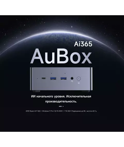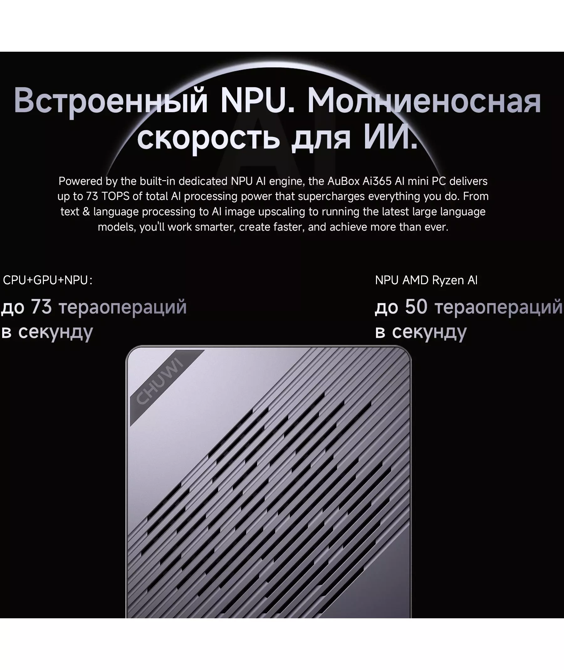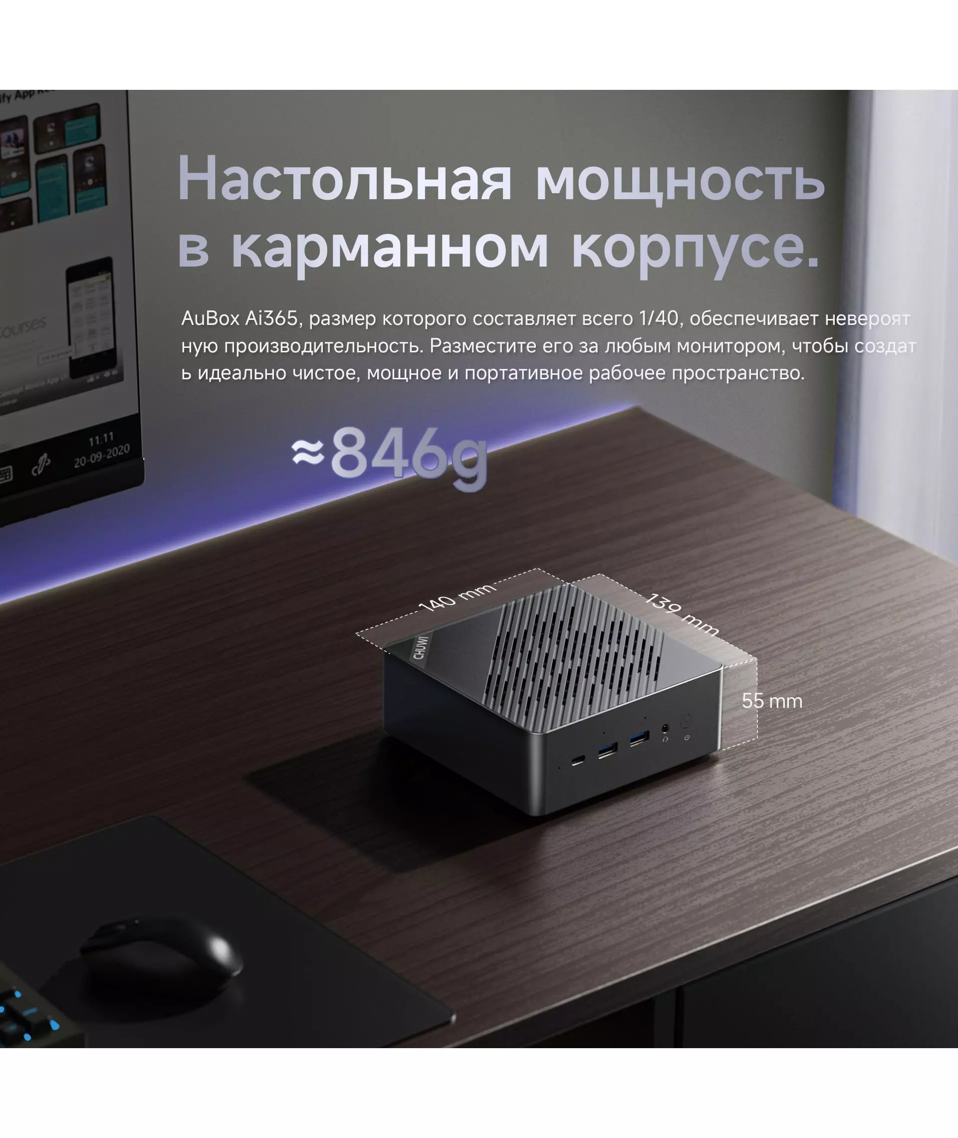 ПК Мини CHUWI AuBox Ryzen AI 9 365 MT Ryzen AI 9 365 (2) 32Gb SSD1Tb Radeon 880M Windows 11 Pro 2x2.5GbitEth WiFi BT 120W серебристый/черный
