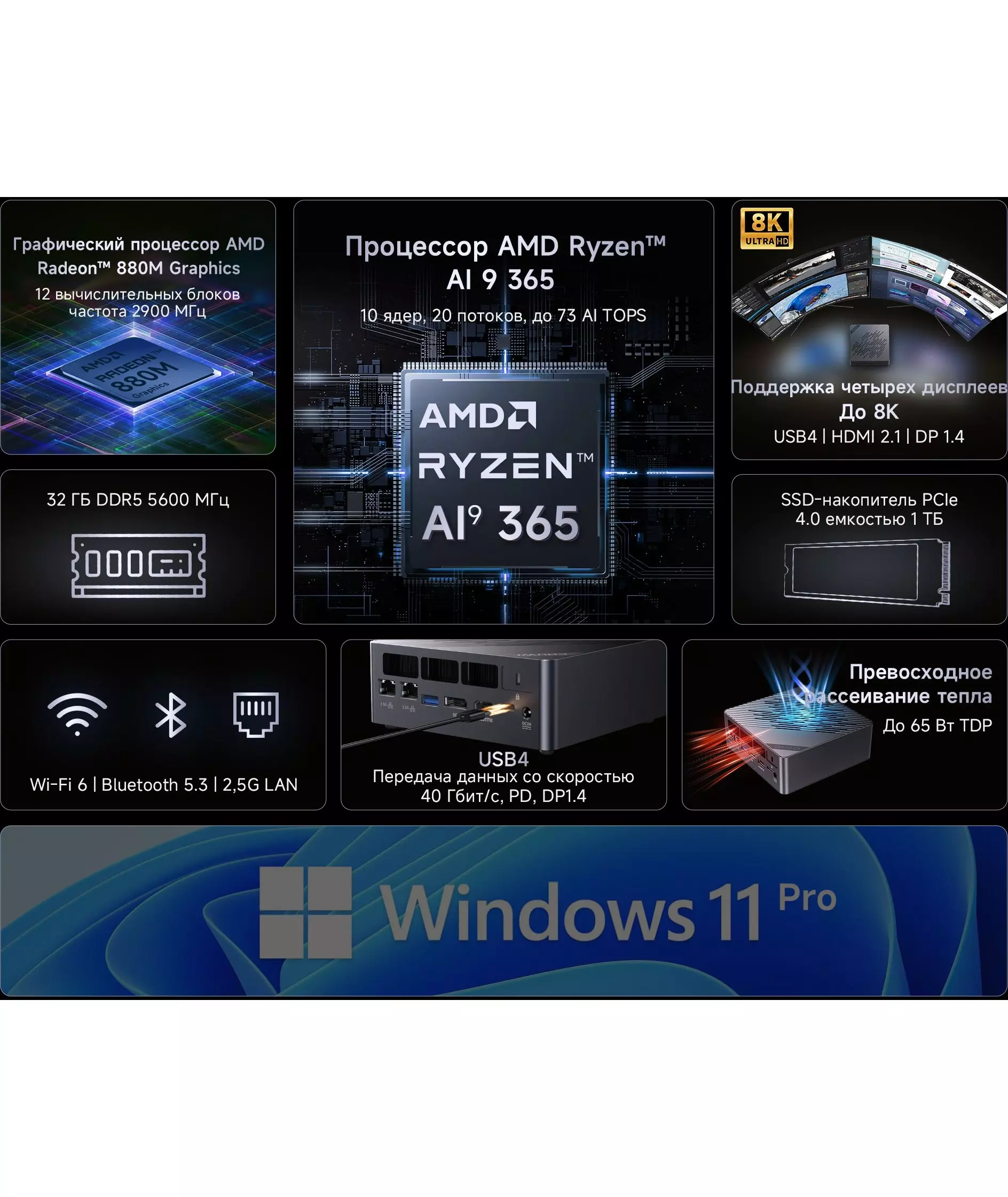 | Процессор | AMD Ryzen AI 9 365 2ГГц |