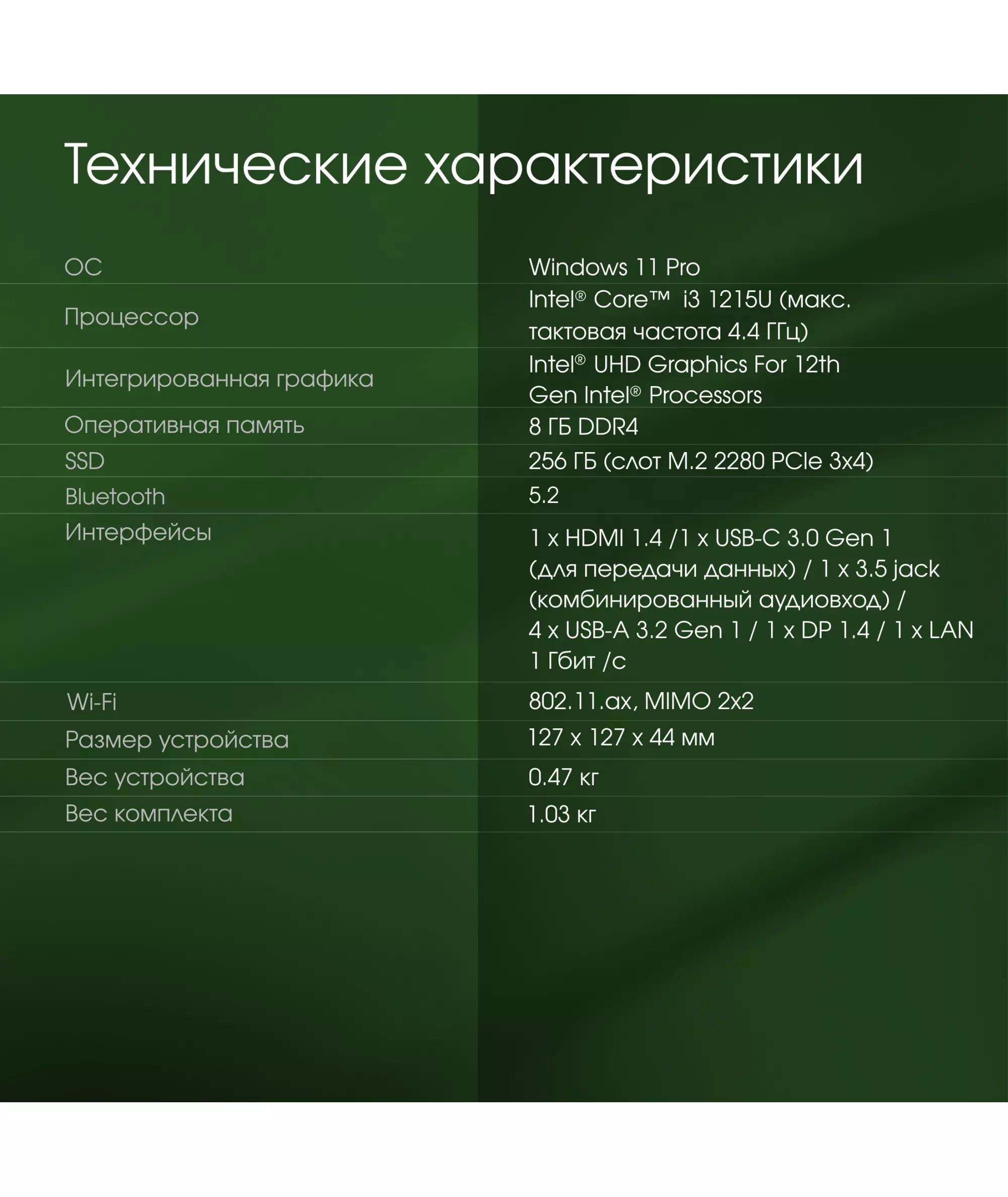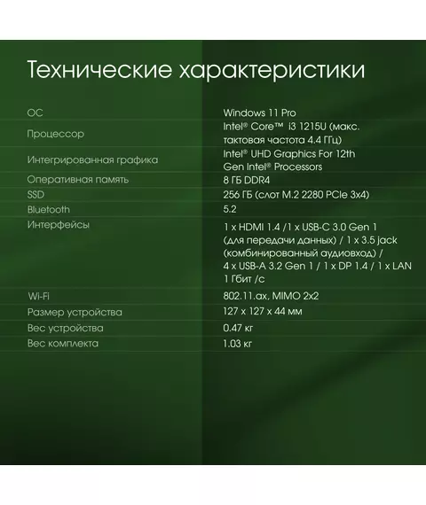 | Процессор | Intel Core i3 1215U 1.2ГГц |