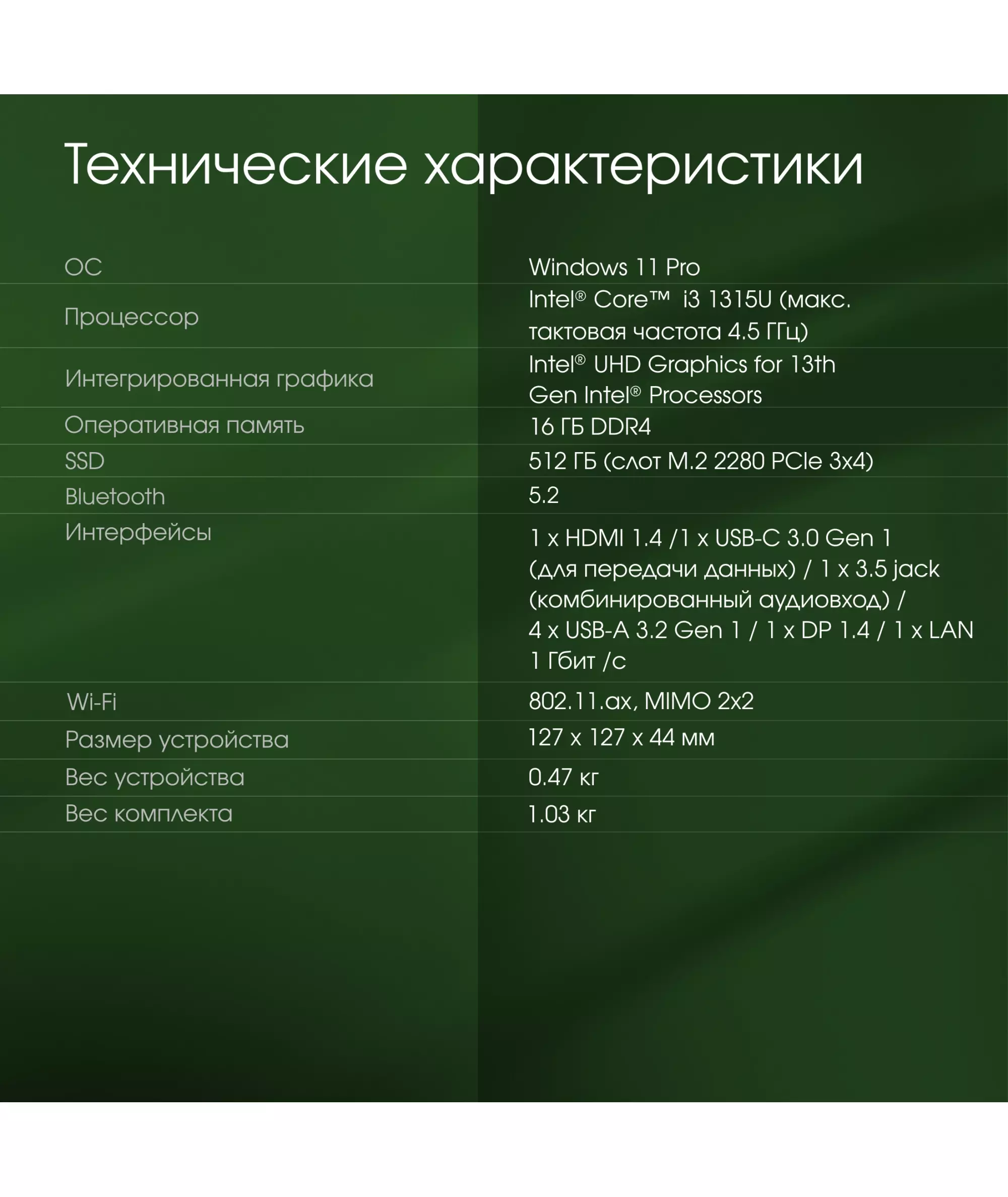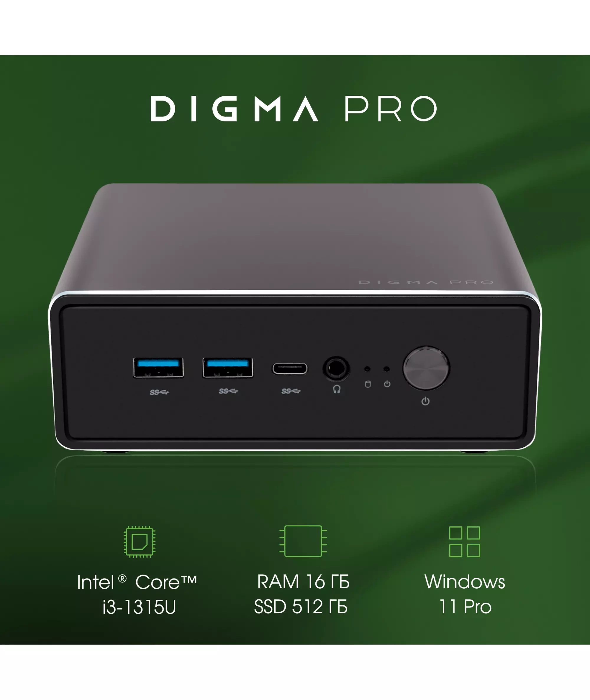 Неттоп Digma Pro Minimax U1 i3 1315U (1.2) 16Gb SSD512Gb UHDG Windows 11 Professional GbitEth WiFi BT 60W темно-серый/черный [DPP3-ADXW02]
