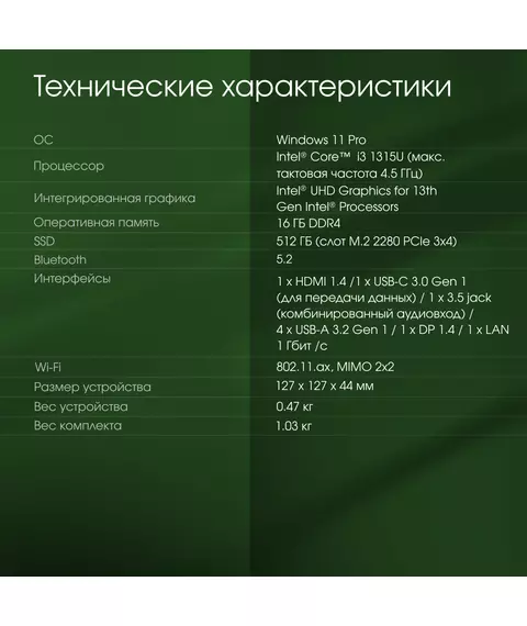 | Процессор | Intel Core i3 1315U 1.2ГГц |