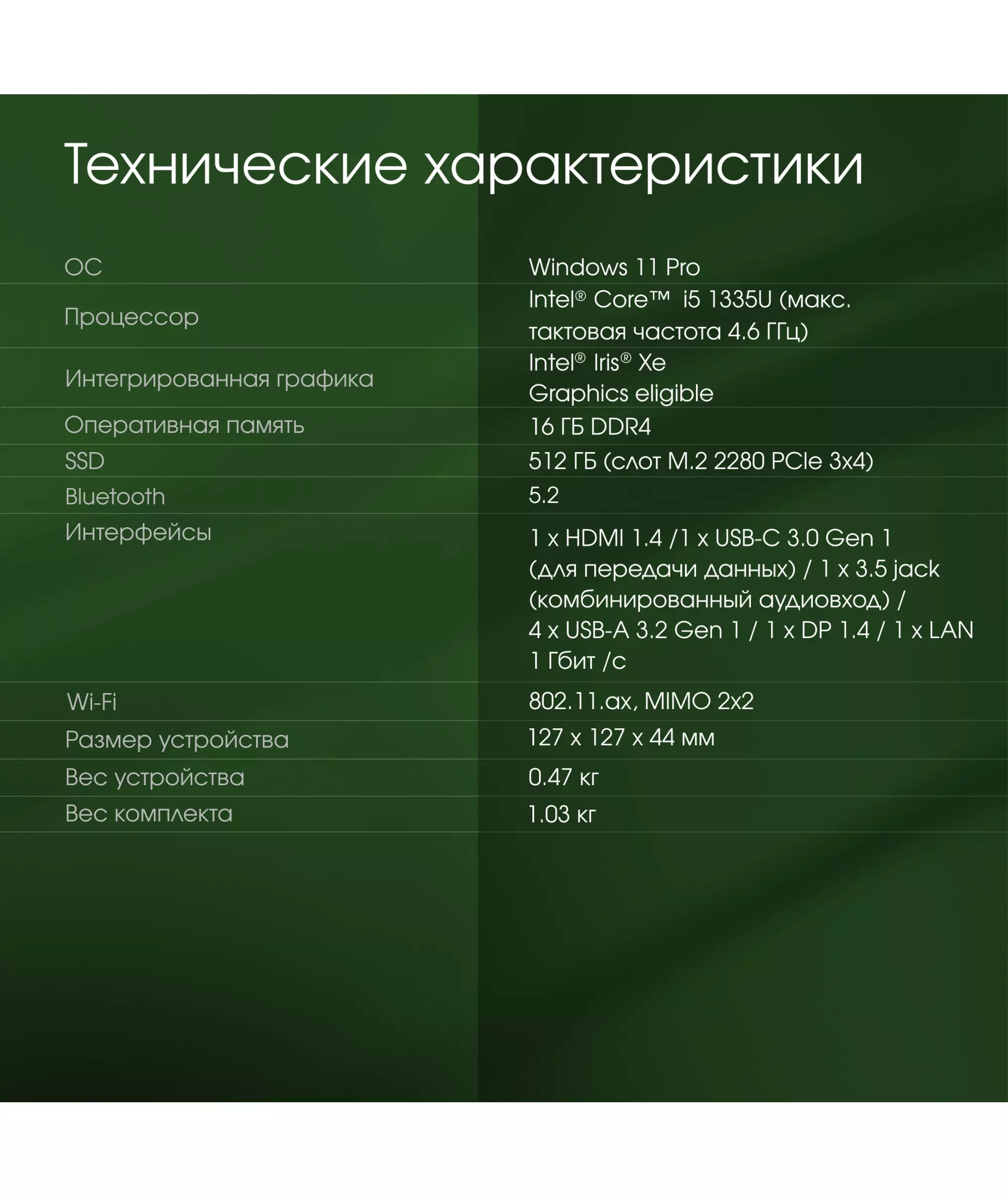 | Процессор | Intel Core i5 1335U 1.3ГГц |