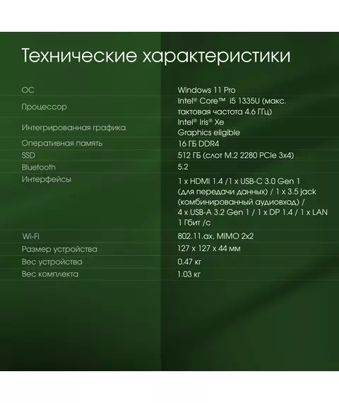 Неттоп Digma Pro Minimax U1 i5 1335U (1.3) 16Gb SSD512Gb Iris Xe Windows 11 Pro GbitEth WiFi BT 60W темно-серый/черный [DPP5-ADXW03]