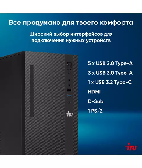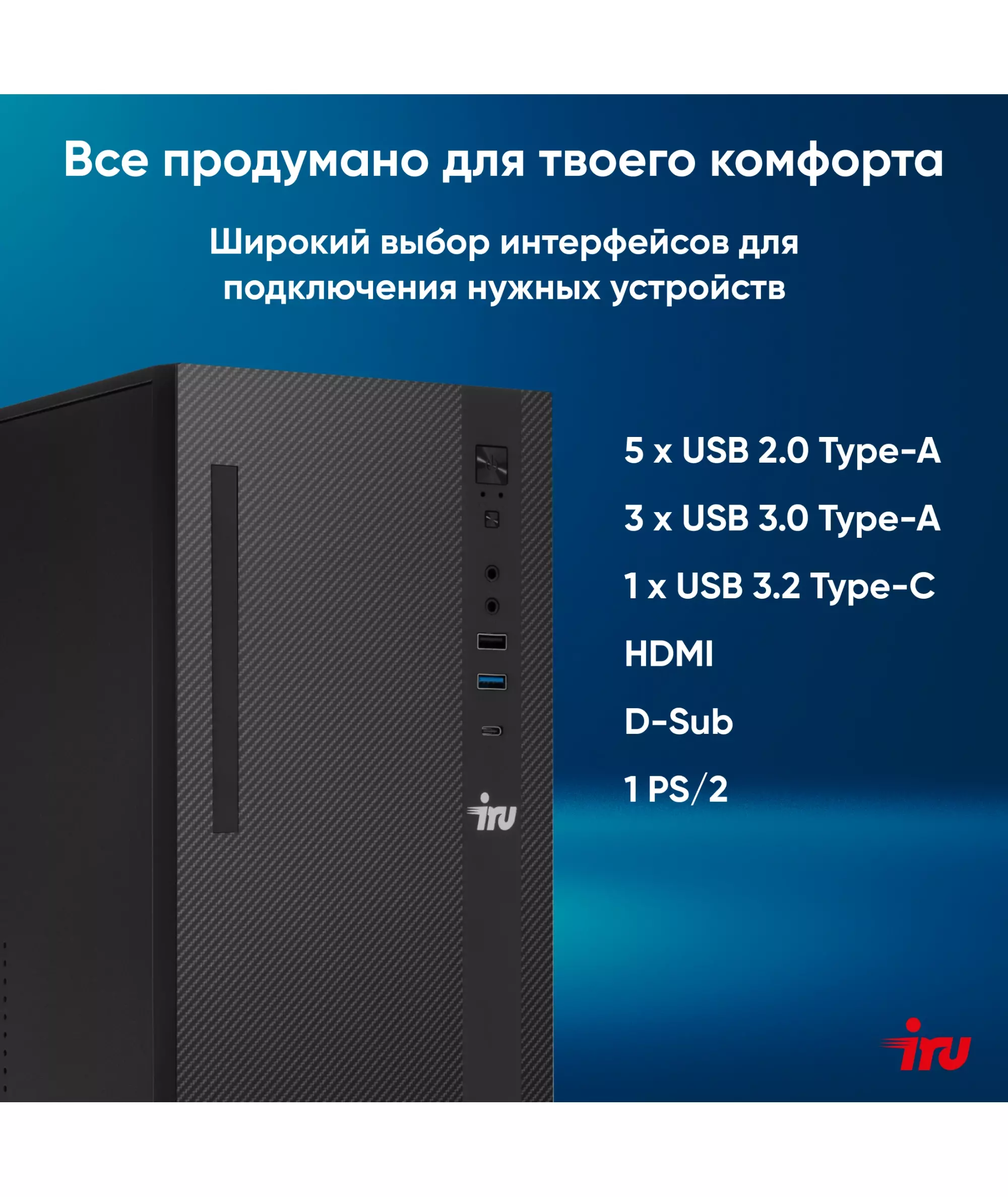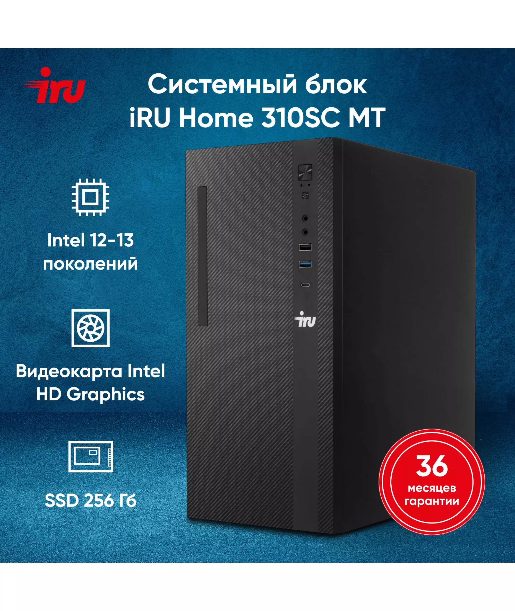 ПК iRU 310SC MT i3 12100 (3.3) 8Gb SSD256Gb UHDG 730 Windows 11 Professional GbitEth 200W черный