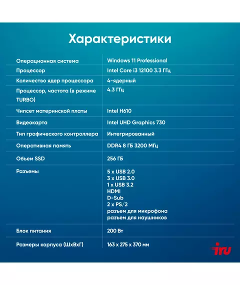 | Процессор | Intel Core i3 12100 3.3ГГц |