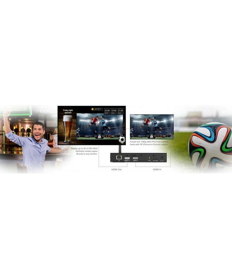 - Разъёмы: 1xLAN Gigabit Ethernet, 1xUSB USB type-C, 1xHDMI Output, 1xHDMI Input, 1xUSB type-A 2.0, Сухие контакты GPIO, COM-порт