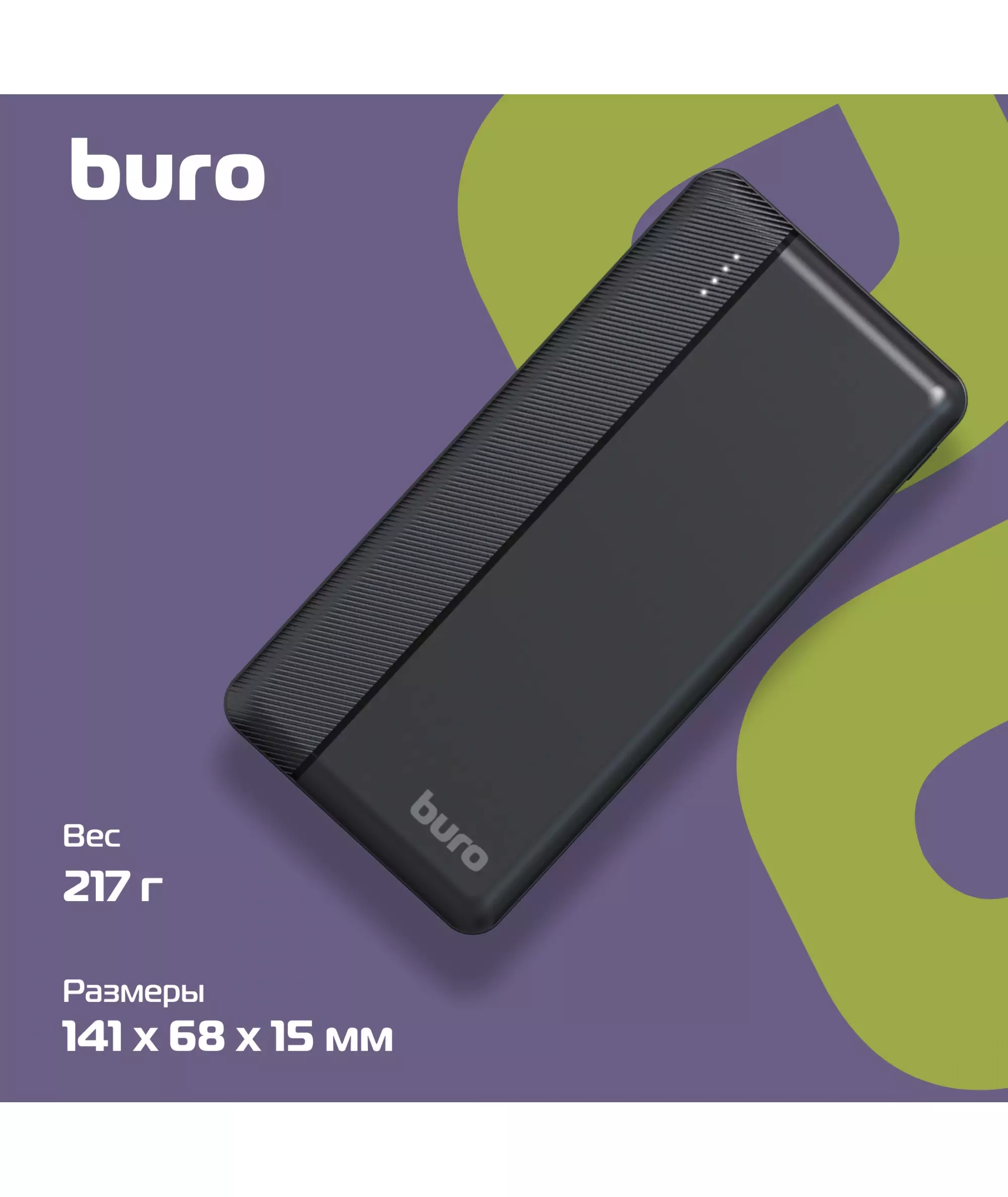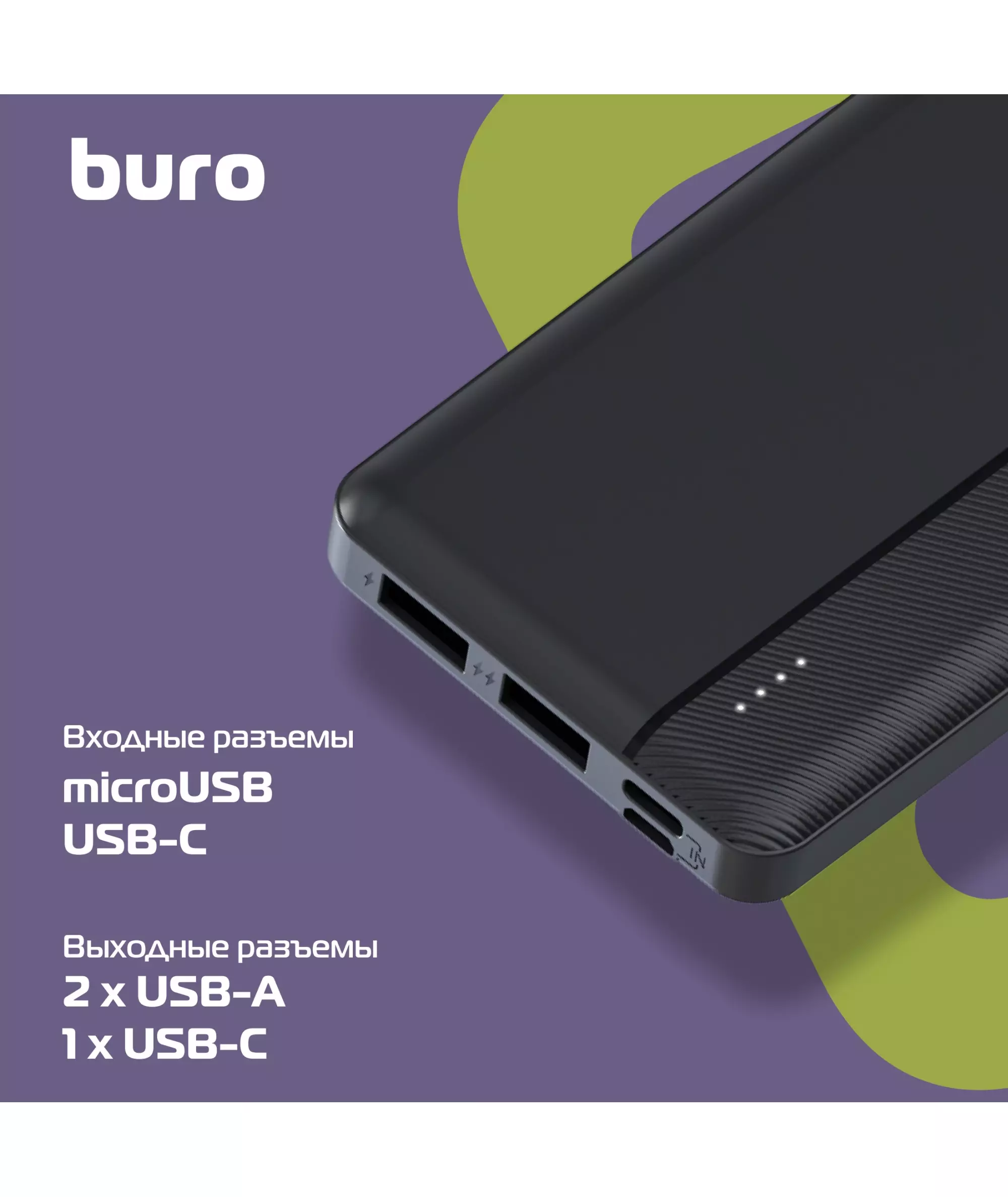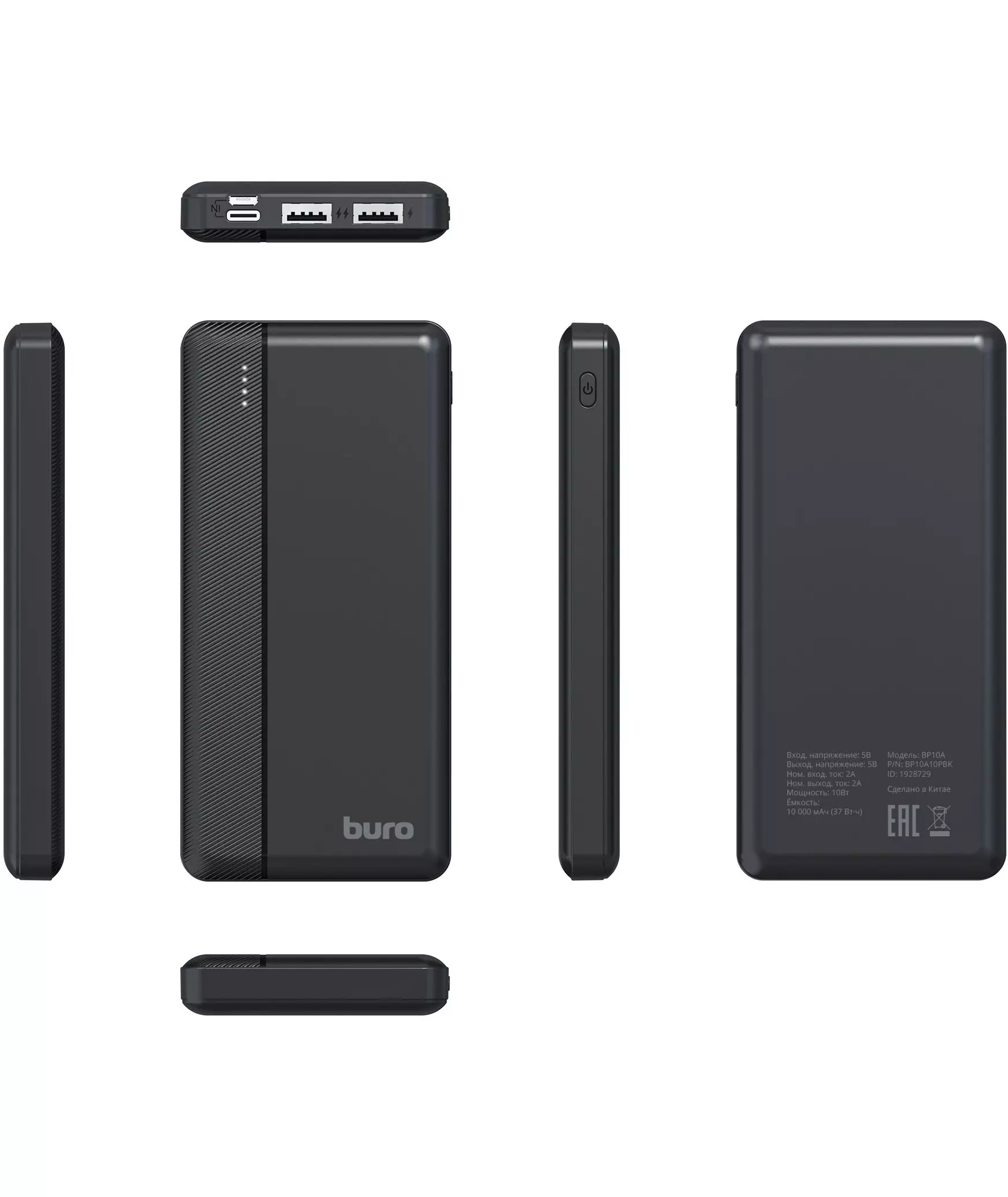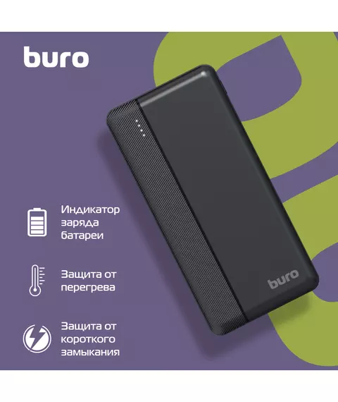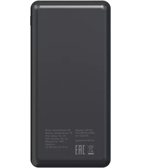 Мобильный аккумулятор BURO BP10A 10000mAh 10W 2A 2xUSB-A/USB-C черный [BP10A10PBK]