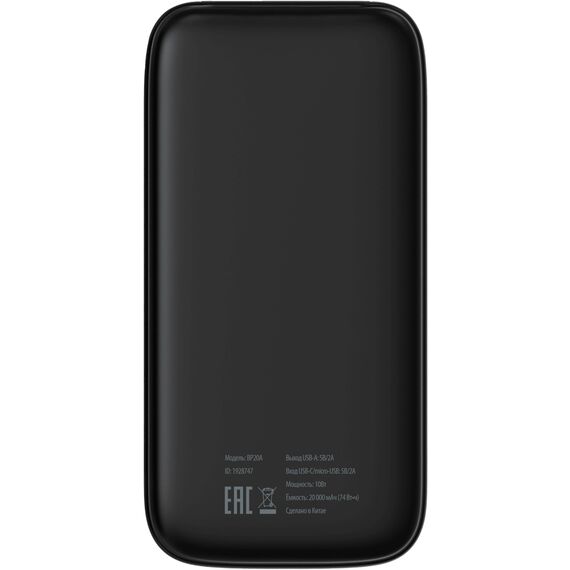 Мобильный аккумулятор BURO BP20A 20000mAh 10W 2A USB-A черный [BP20A10PBK]
