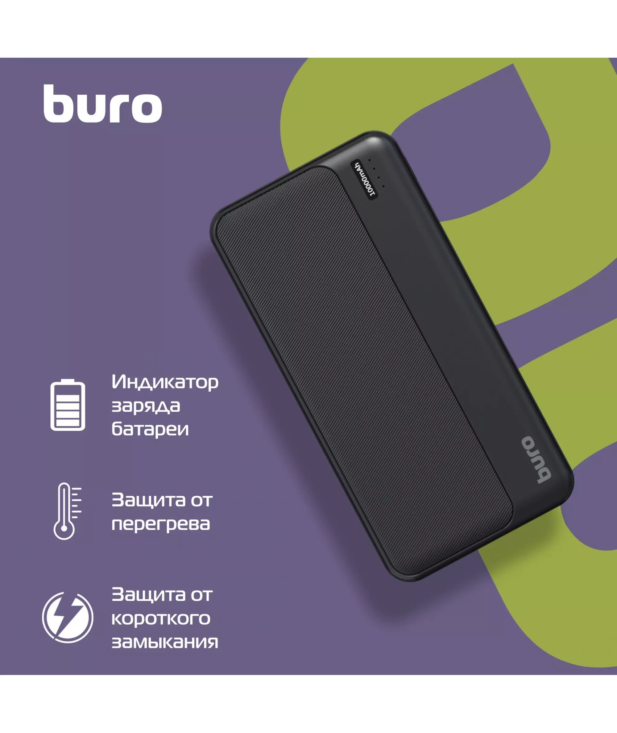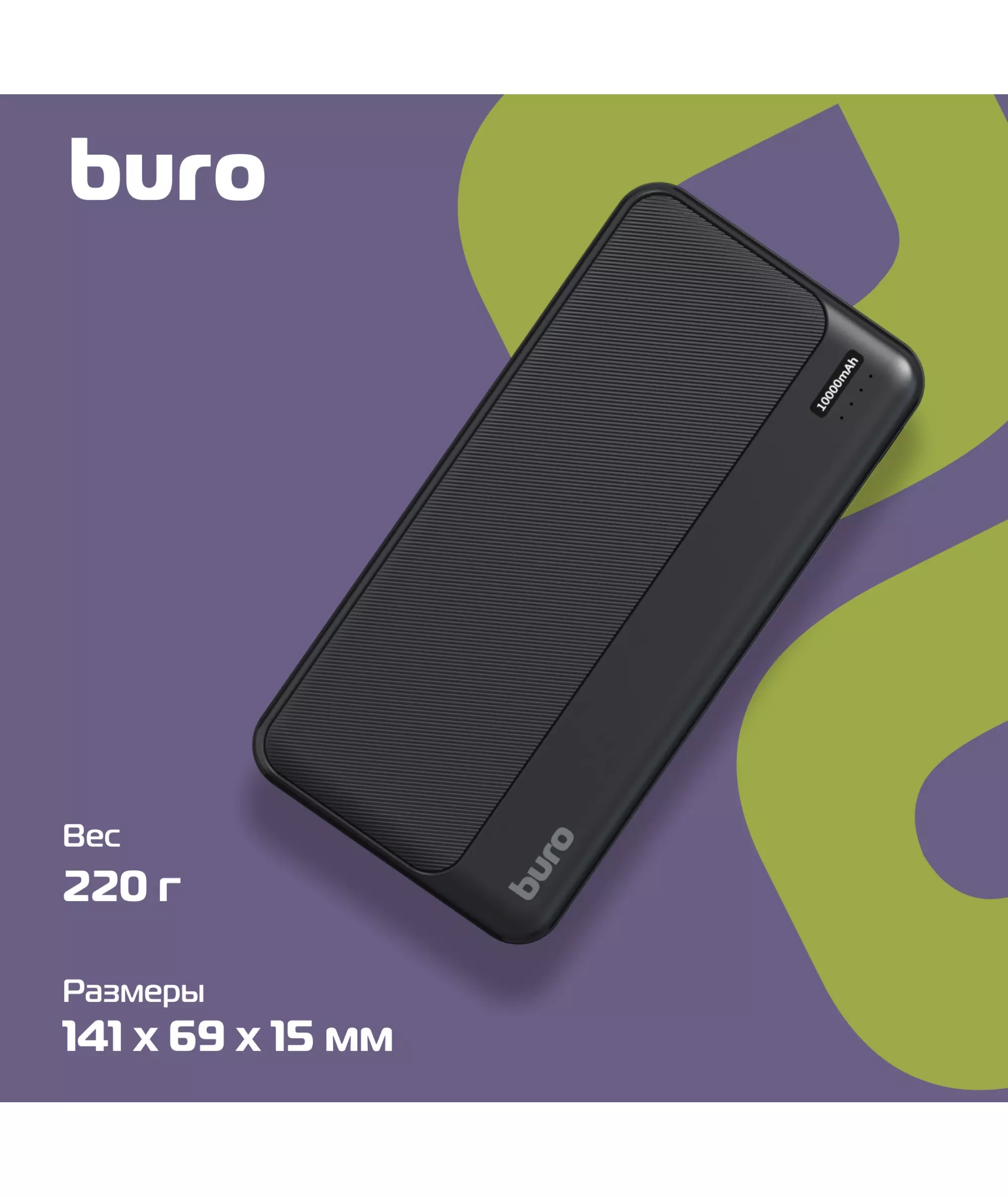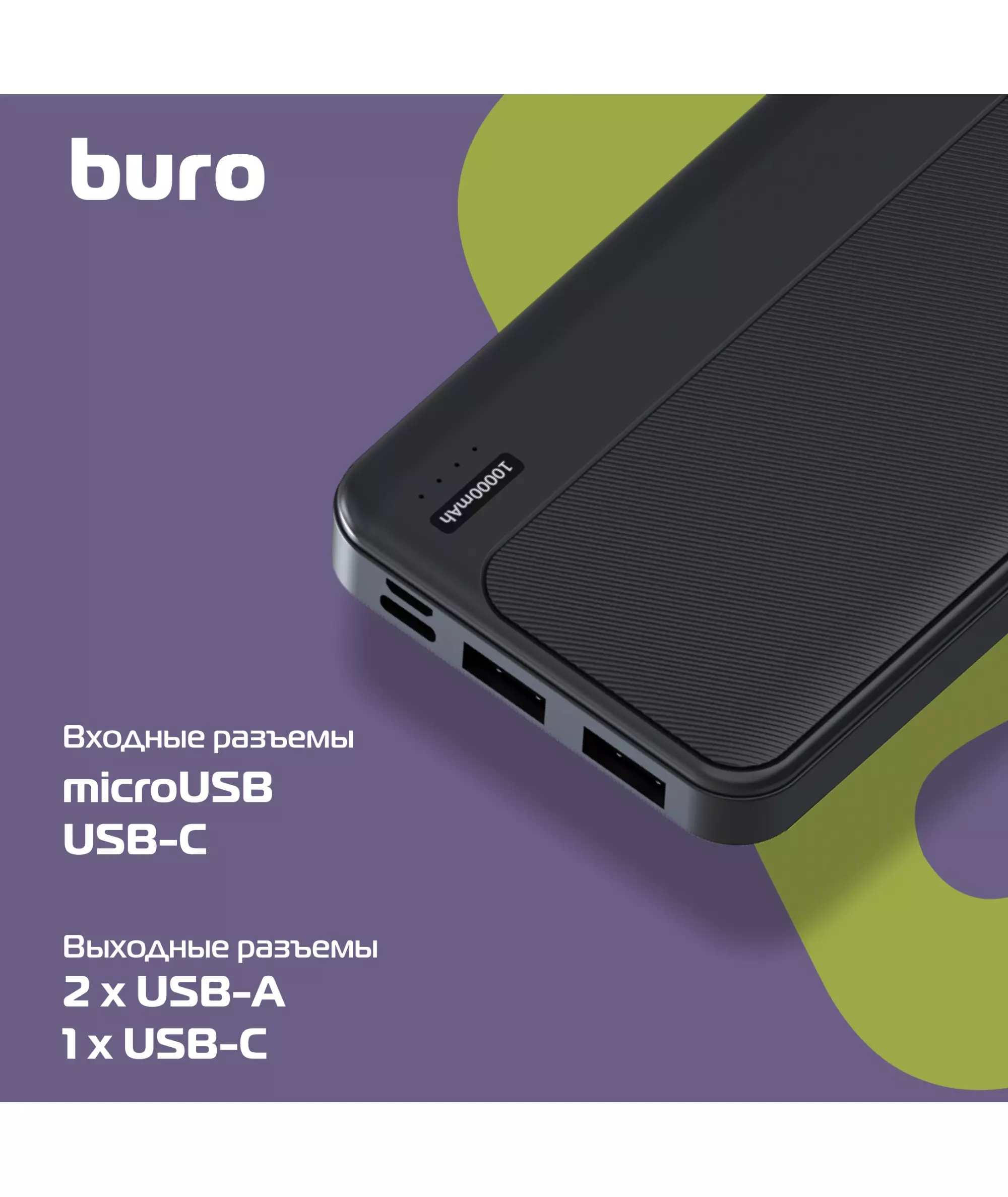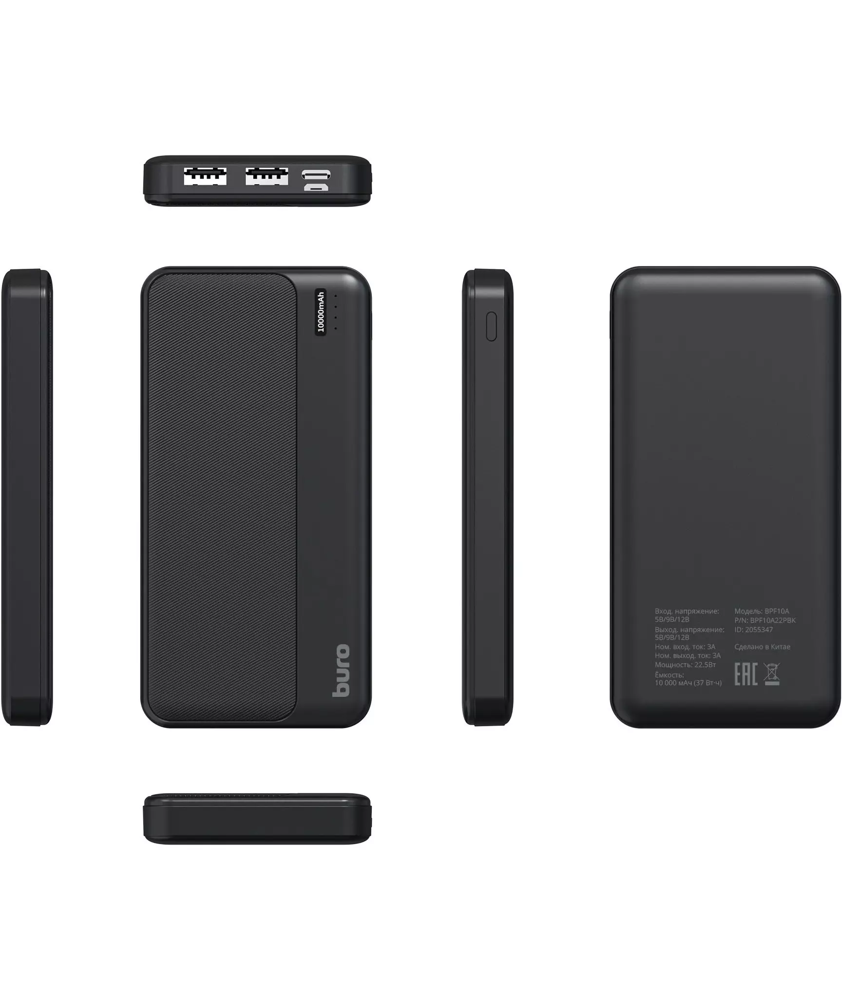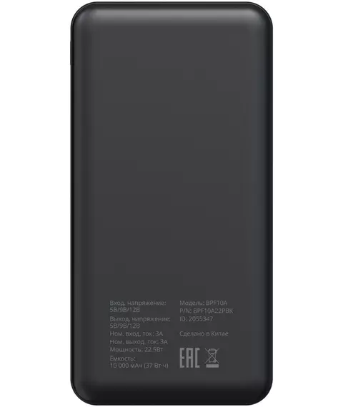 Мобильный аккумулятор BURO BPF10A 10000mAh QC3.0/PD3.0 22.5W 3A 2xUSB-A/USB-C черный [BPF10A22PBK]