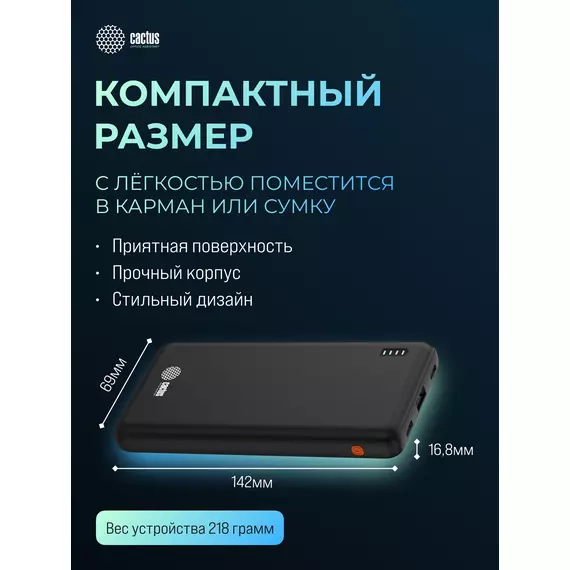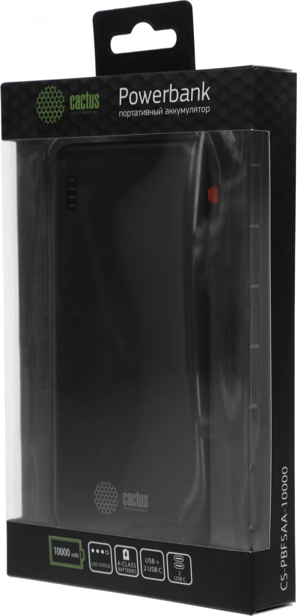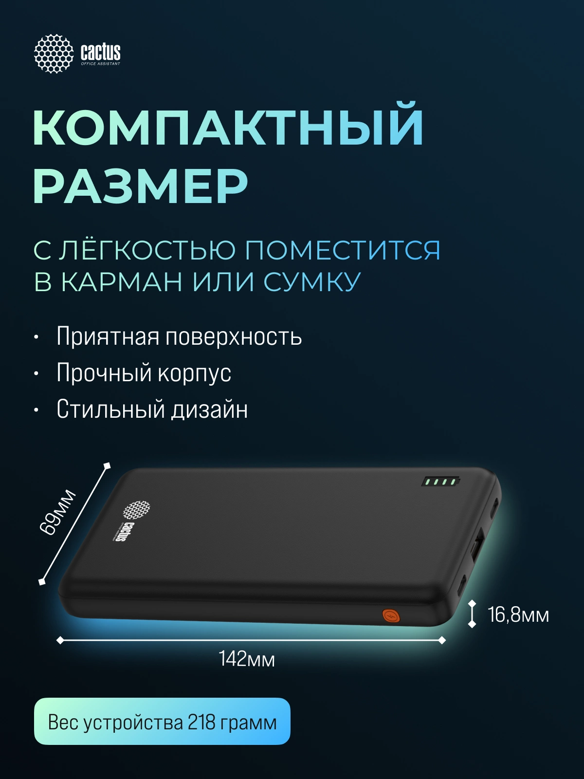 Мобильный аккумулятор Cactus CS-PBFSAA-10000 10000mAh 22.5W 4.5A USB-A/2xUSB-C черный